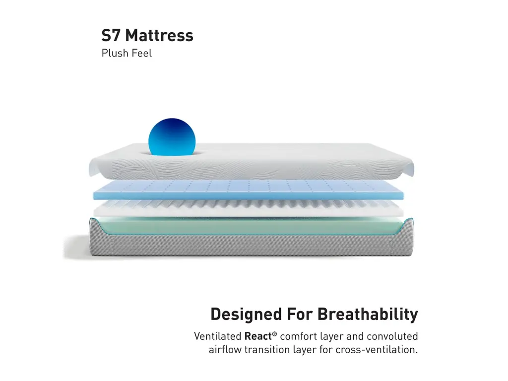 Our plushest feel yet. We've designed our S7 with recovery in mind. The S7 is a luxurious memory foam mattress that is made to keep you cool while sleeping. With our exclusive, instant cooling fabric and breathable mesh for continuous airflow, the S7 is designed to help you sleep better so you can perform better. All of our mattresses are engineered with foam that is CertiPUR-US certified.
