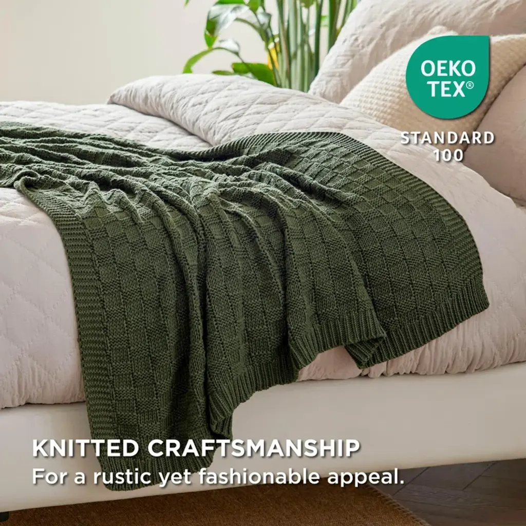 Bedsure 100% Cotton Knitted Throw Blanket For Couch, Checkered Chunky Knit Blanket For Summer, Soft Breathable And Lightweight Throw Blanket, Throw (50 X 60")"