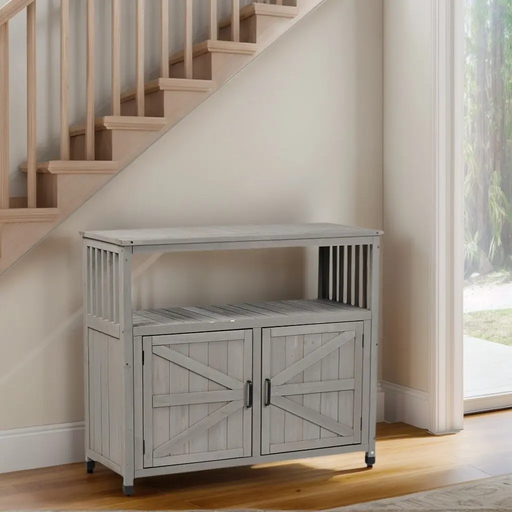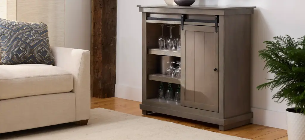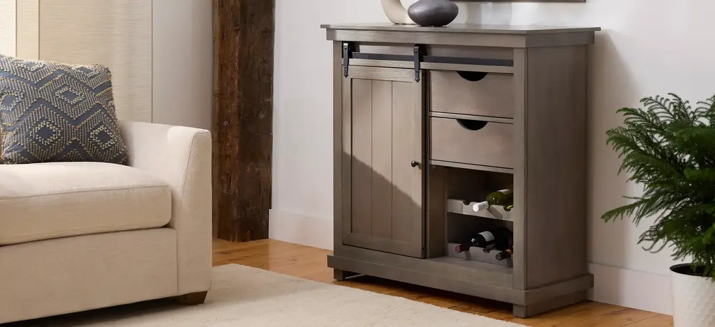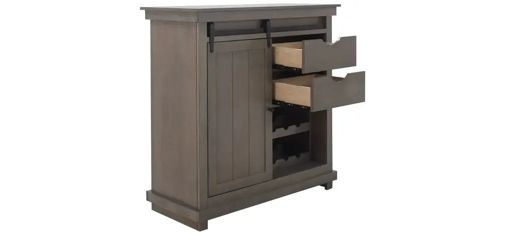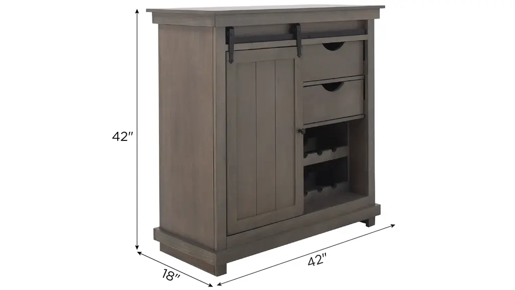 Cheers to the Beebe wine cabinet! Its beautiful gray veneers lend a classy look to your space. Conveniently store wine and other essentials with plenty of thoughtfully crafted storage space.
