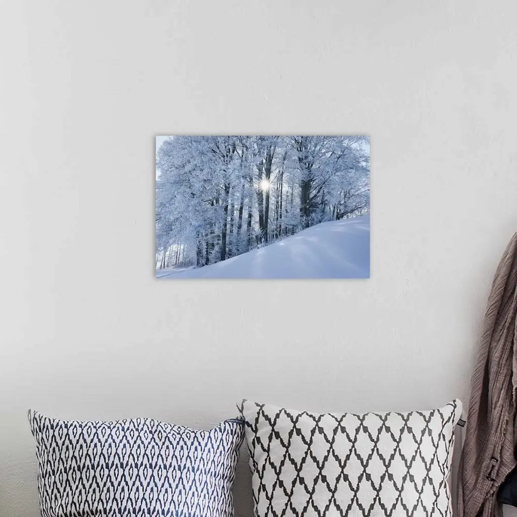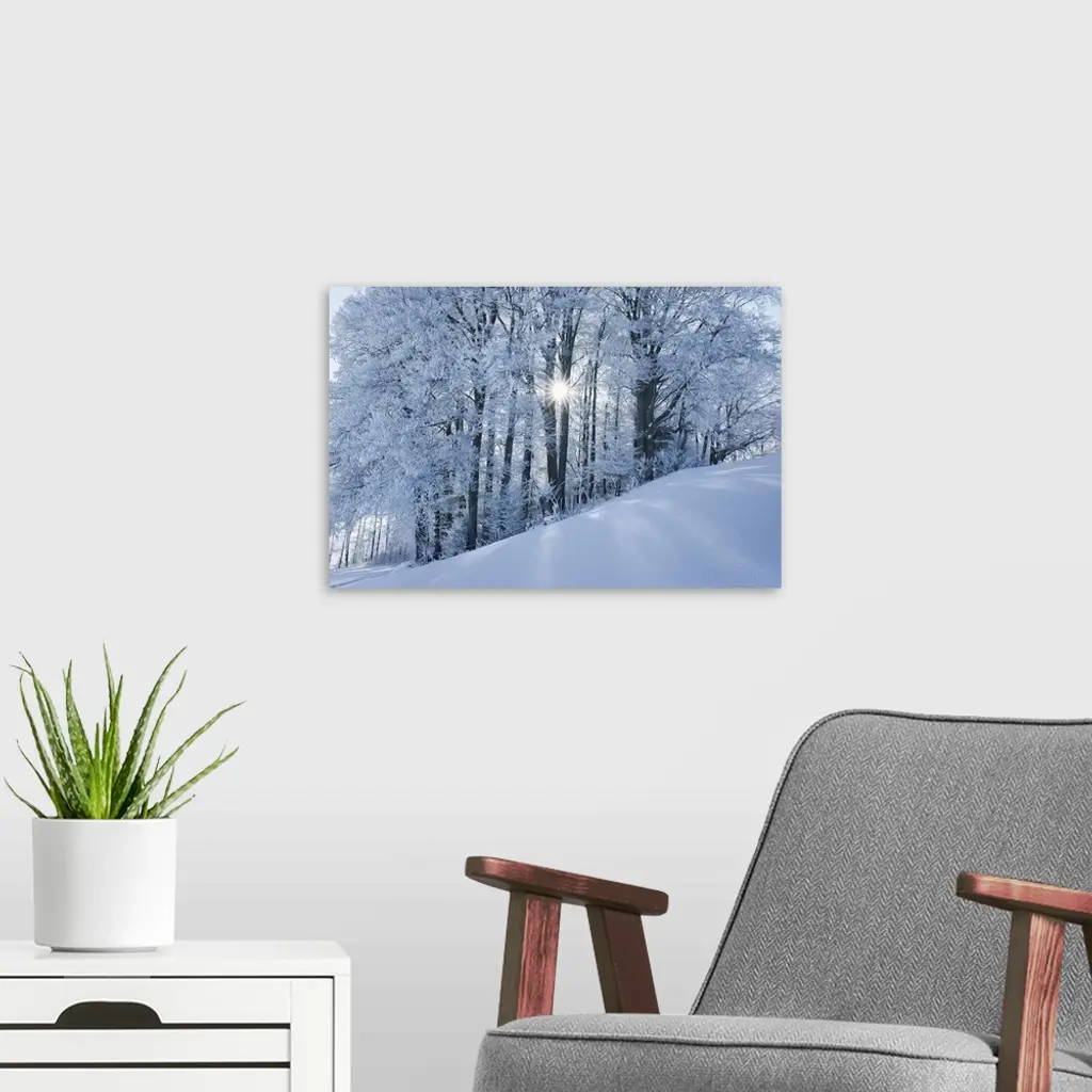 Beech Forest With Hoar Frost In Winter, Germany, Bavaria, Miesbach, Kleinpienzenau