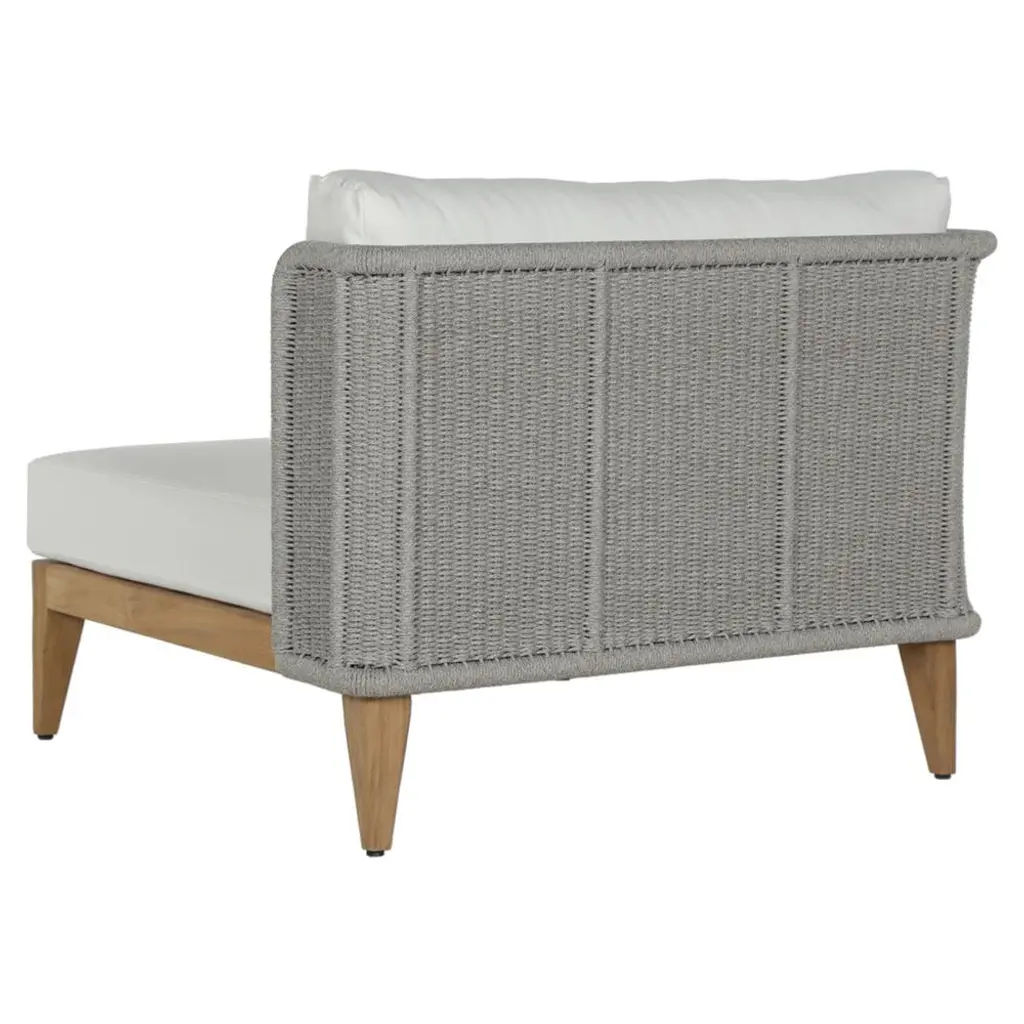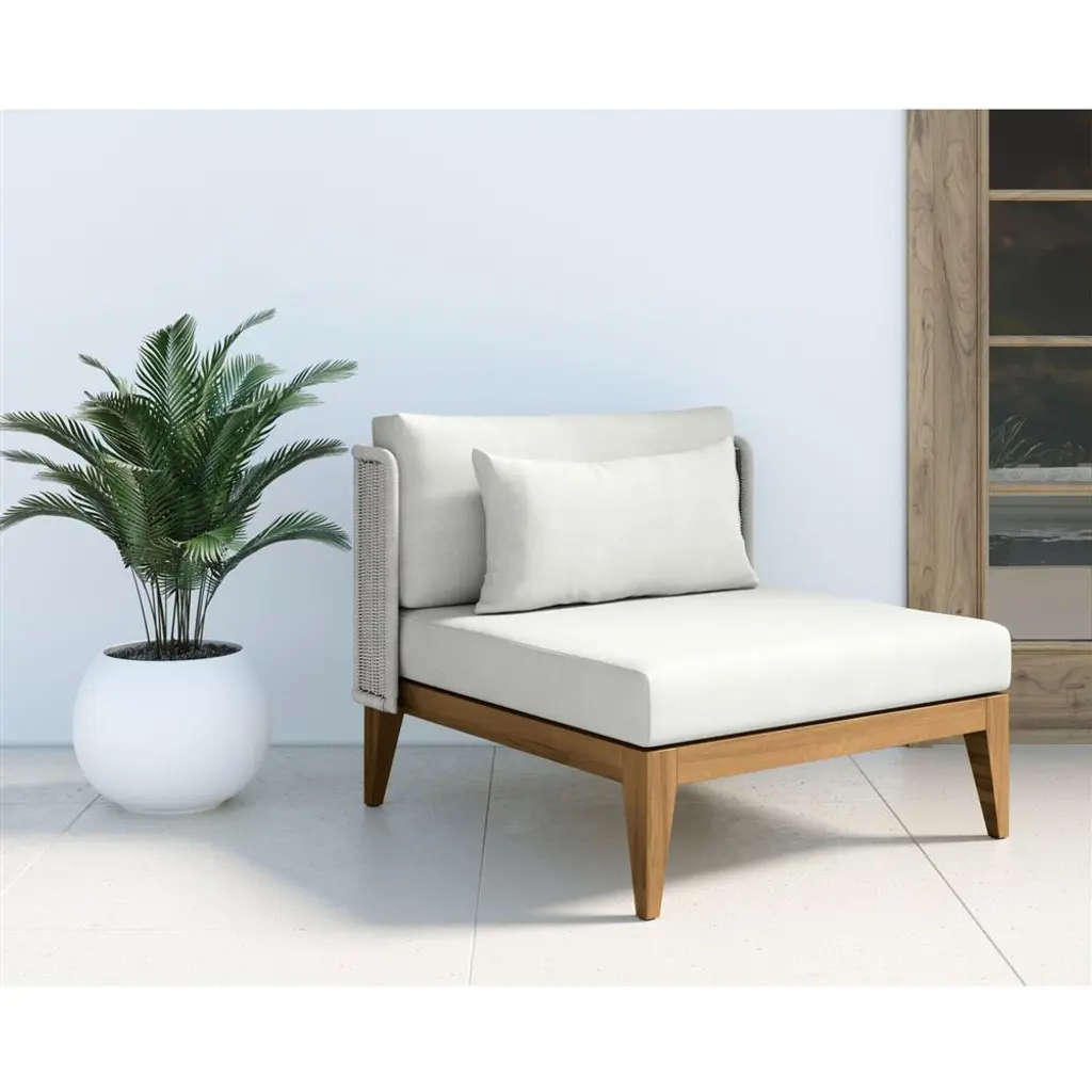 Beeston Coastal White Cushion Natural Teak Woven Outdoor Lounge Chair