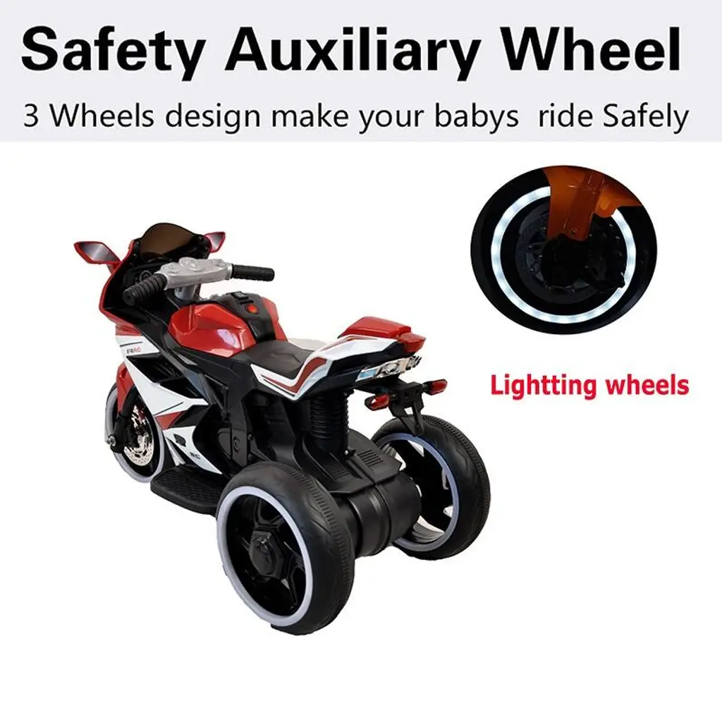 Product Overview:The 6V Kids Electric Motorcycle is designed to provide young children aged 3-4 with a fun, safe, and engaging riding experience. Featuring LED light-up wheels, MP3 player compatibility, and built-in headlights, this beginner-friendly ride-on toy offers both excitement and safety. With its durable construction and stable design, it's the perfect gift for any child ready to start their riding adventure.Product Features:Specifications:Weight & Dimensions:Suitable Scenarios:Notes: