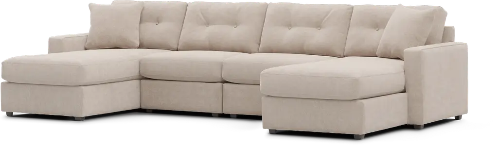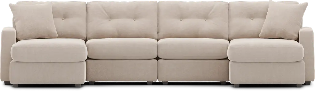 Discover the limitless possibilities of the Drew & Jonathan ModularOne, thoughtfully designed with comfort and flexibility in mind. This customizable seating solution features individual pieces that can be configured to any shape your room needs - the seating arrangement you want is always right at your fingertips. Each individual piece is upholstered on all sides in our signature fabric, New Horizon. This soft, beige chenille includes Repreve yarn, made with recycled plastic bottles. The seating area has welted track arms, top-stitched seat cushions and button-tufted back cushions for an elegant silhouette. Seats with power reclining functionality allow for easy adjustment of the footrest, providing the ultimate in personalized comfort. Includes LAF chaise, 2 armless power recliners, and RAF chaise. Upholstery: 100% Polyester.