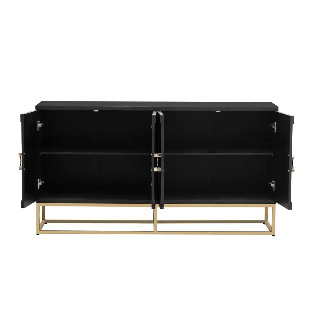 Beige 59.80 In. W Metal Handle Storage Cabinet With Adjustable Shelves - Black