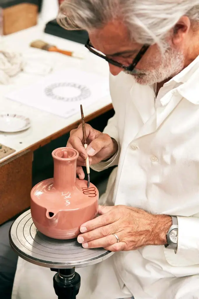 Beige Arab offee set doobide with Porcelain Finish [Limited Edition of 50th]Materials: PorcelainDimensions: D 16 cm x W 16 cm x H 18 cmThere’s a theory that the introduction of coffee to Europe from the Arab world was the catalyst for the Enlightenment back in the 1700s. Alfredo Häblerli’s design for a commemorative coffee set for Dubai’s 2021 World Exhibition was inspired by its deep cultural roots. Now it has been adapted to commemorate BD Barcelona’s 50th anniversary. Doobide Collection is inspired in emirates’ society coffee tradition and has been designed to celebrate BD 50th anniversary. The collection consists of a limited edition of 50 numbered crockery sets. It is available in five different colour ranges and 5 graphics: green, beige, flesh, grey, and blue. Each range contains 10 crockery sets. It is composed of a teapot and 6 teacups (3 different models). The pieces are made out of dyed porcelain and painted by hand in platinium.Important information regarding color(s) of products:Actual colors may vary. This is due to the fact that every computer monitor, laptop, tablet and phone screen has a different capability to display colors and that everyone sees these colors differently. We try to edit our photos to show all of our products as life-like as possible, but please understand the actual color may vary slightly from your monitorImportant information regarding image of products:The item that it selling is on the first image.