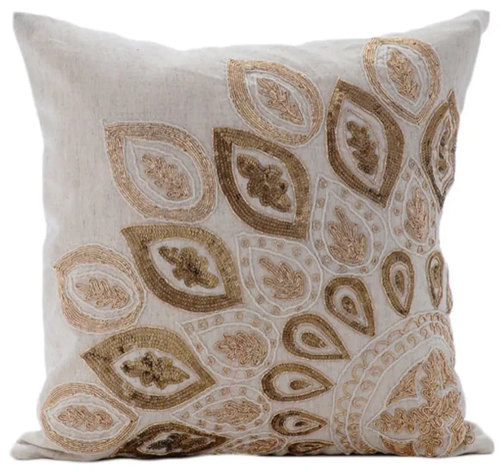 Gold Charm is an exclusive 100% handmade decorative pillow cover designed and created with intrinsic detailing. A perfect item to decorate your living room, bedroom, office, couch, chair, sofa or bed. The real color may not be the exactly same as showing in the pictures due to the color difference of monitors. This listing is for Single Pillow Cover only and does not include Pillow or Inserts.Decorative Pillow Cover Details:Condition: 100% Brand NewDimension: 22 x 22 inch / 55 x 55 cmFabric: Cotton LinenColor: EcruColor Map: BeigeStyle: ContemporaryPattern: AbstractBack of the Cover: Plain fabric with hidden flap covered zipper for easy insertion and removal of inserts.The HomeCentric is the place where luxury is coated in comfort. Coveted by many, we offer a wide range of decorative pillow covers, euro shams, bed runners, table runners and even fabrics for your curtains and other home decor products. These pieces are created by professionals from its design to finishing. Our services reach out from customization to endless effort from your first click to the day we deliver and even after that. Feel The HomeCentric as your home for decor.