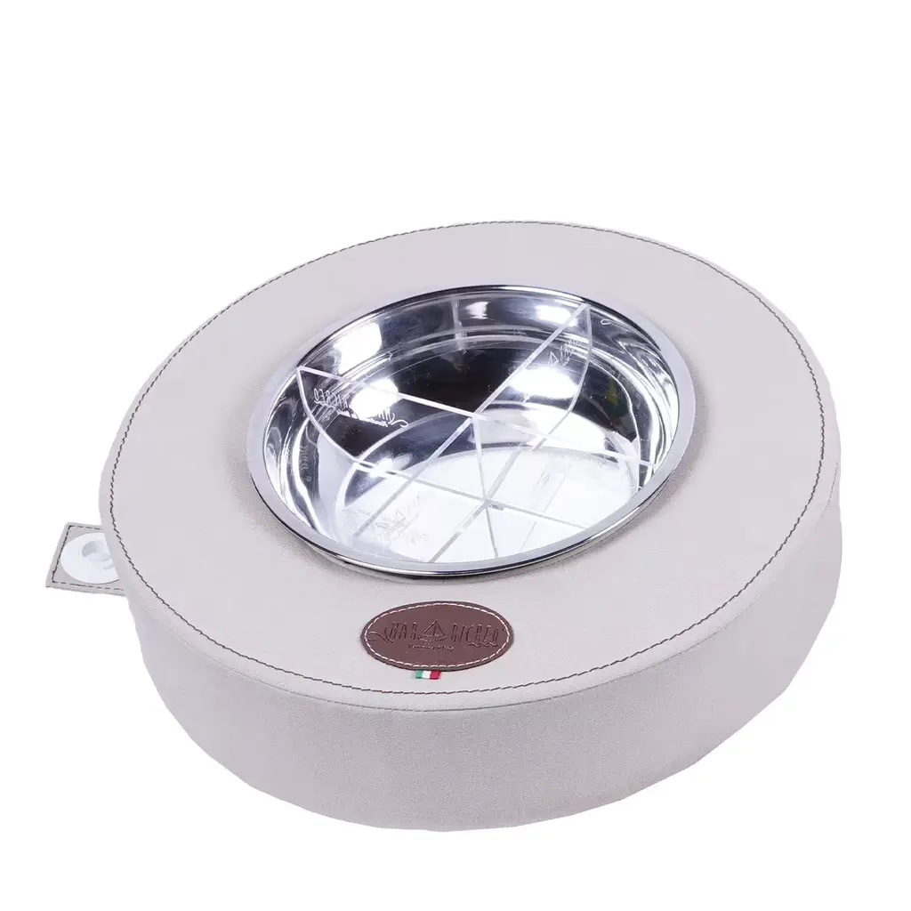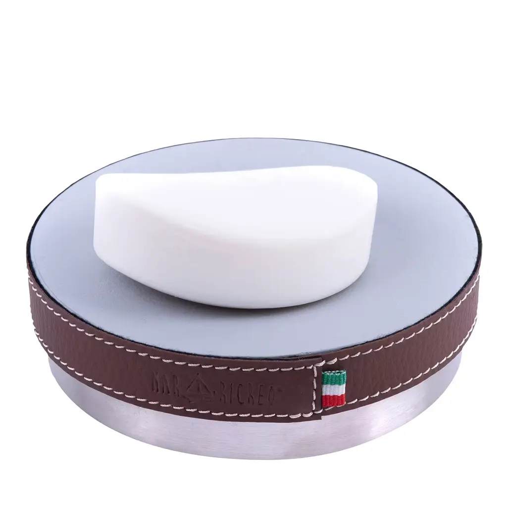 An original and elegant addition to a contemporary-style bathroom decor, this gorgeous soap holder is handcrafted of steel and polystone, and is partly covered with beige-colored faux leather upholstery. Available in other colors upon choice, please contact the Concierge for further details and customizations.
