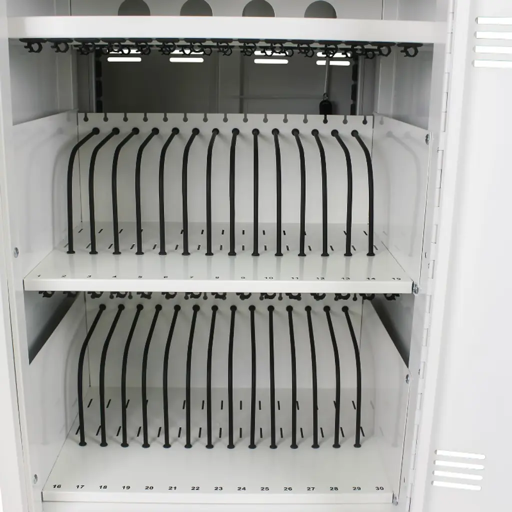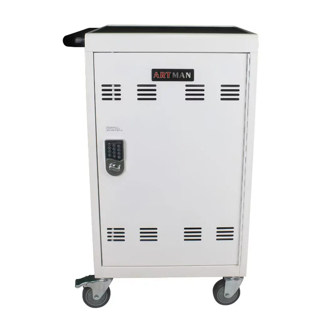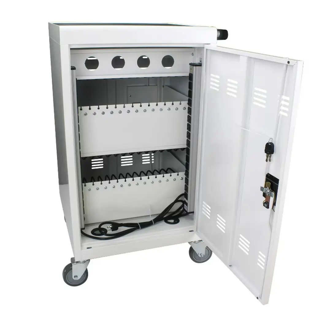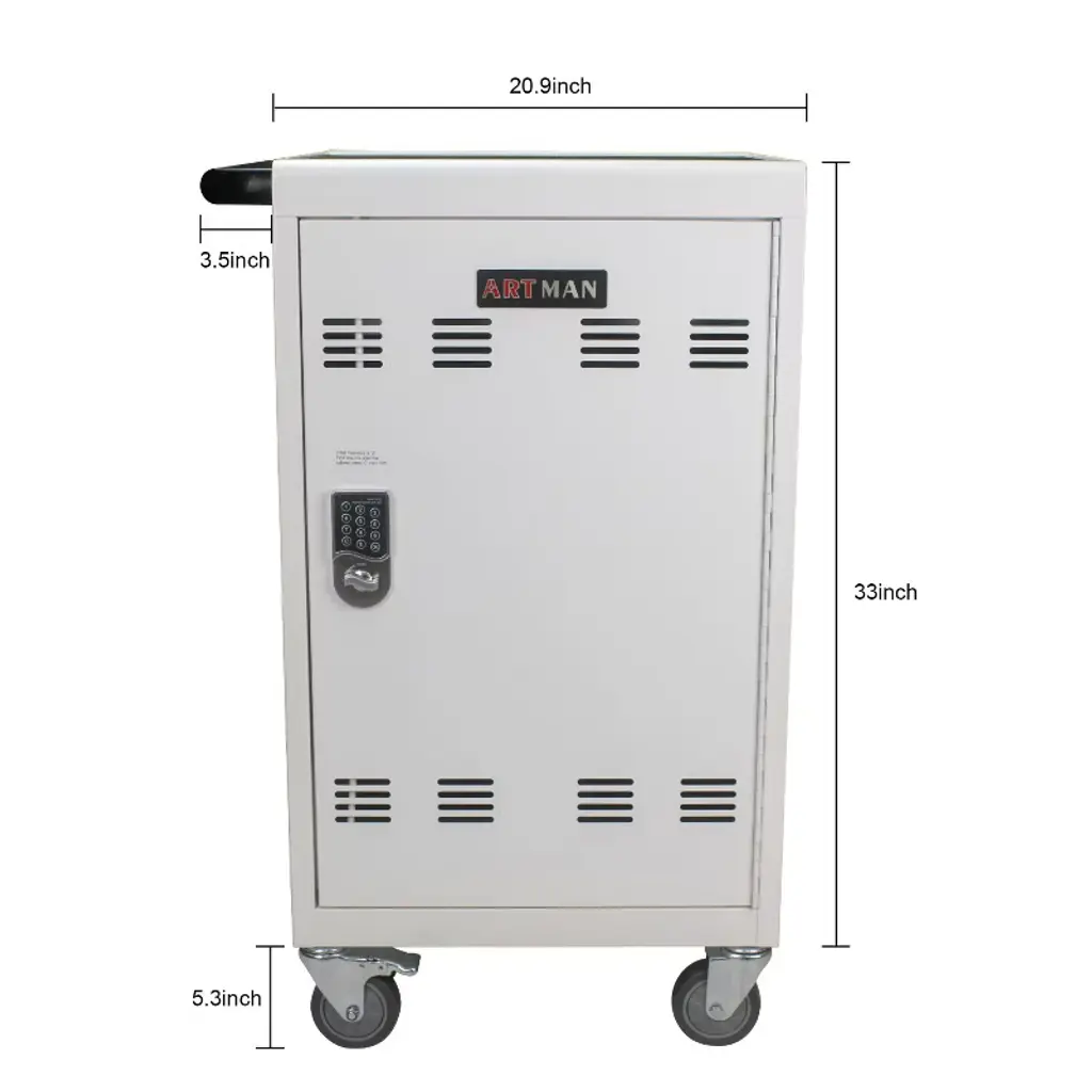 Belatt 32-Bit Charging Cart: Secure, Scalable Tech Management Engineered for Institutions This antique white/black charging cart combines military-grade security and rapid charging to streamline device workflows in schools, hospitals, or airports. The all-steel construction and lockable casters ensure theft-proof portability, while the cable management system eliminates clutter. Key Features Fast Charging: 32-Bit Charging Hub: Simultaneously powers 30 devices with surge protection (UL-certified). Grid Storage: Adjustable dividers fit iPads (7–12.9”), Chromebooks (up to 15.6”), and smartphones. Pro-Grade Security Dual-Door Locks: Secure devices during charging or transport. Locking Casters: 2 brake wheels stabilize the cart mid-movement. Durable Design: Anti-Rust Steel: Powder-coated finish resists scratches and humidity. Ventilation Slots: Prevent overheating during prolonged charging. Technical Specs ✔️ Dimensions: 20.8”W x 21.2”D x 38.3”H | Weight: 90 lbs (cart) / 97 lbs (shipped) ✔️ Material: Steel frame + ABS bins | Color: Antique White Perfect For: Schools: Manage classroom iPads or Chromebooks securely. Libraries: Organize loaner tablets with minimal floor space. Hospitals: Store medical tablets in clinics.