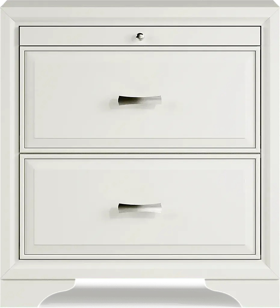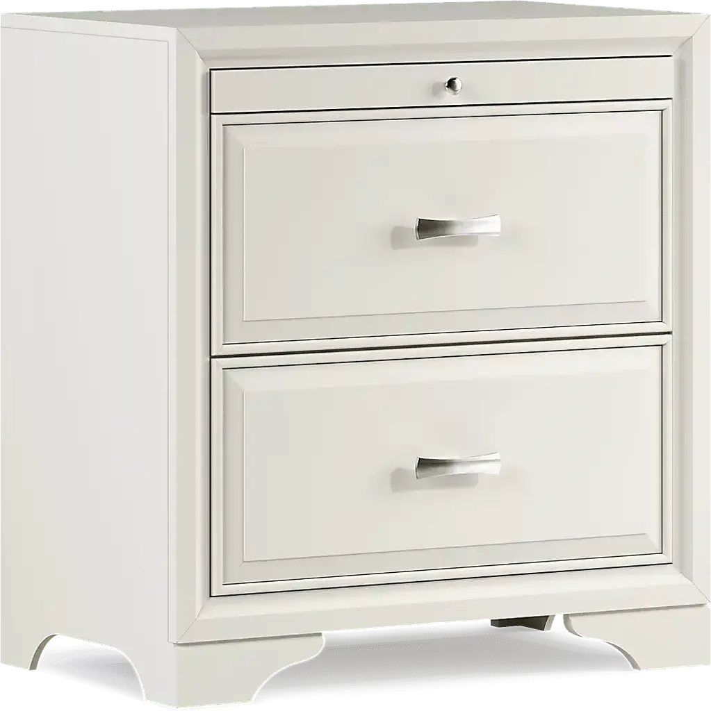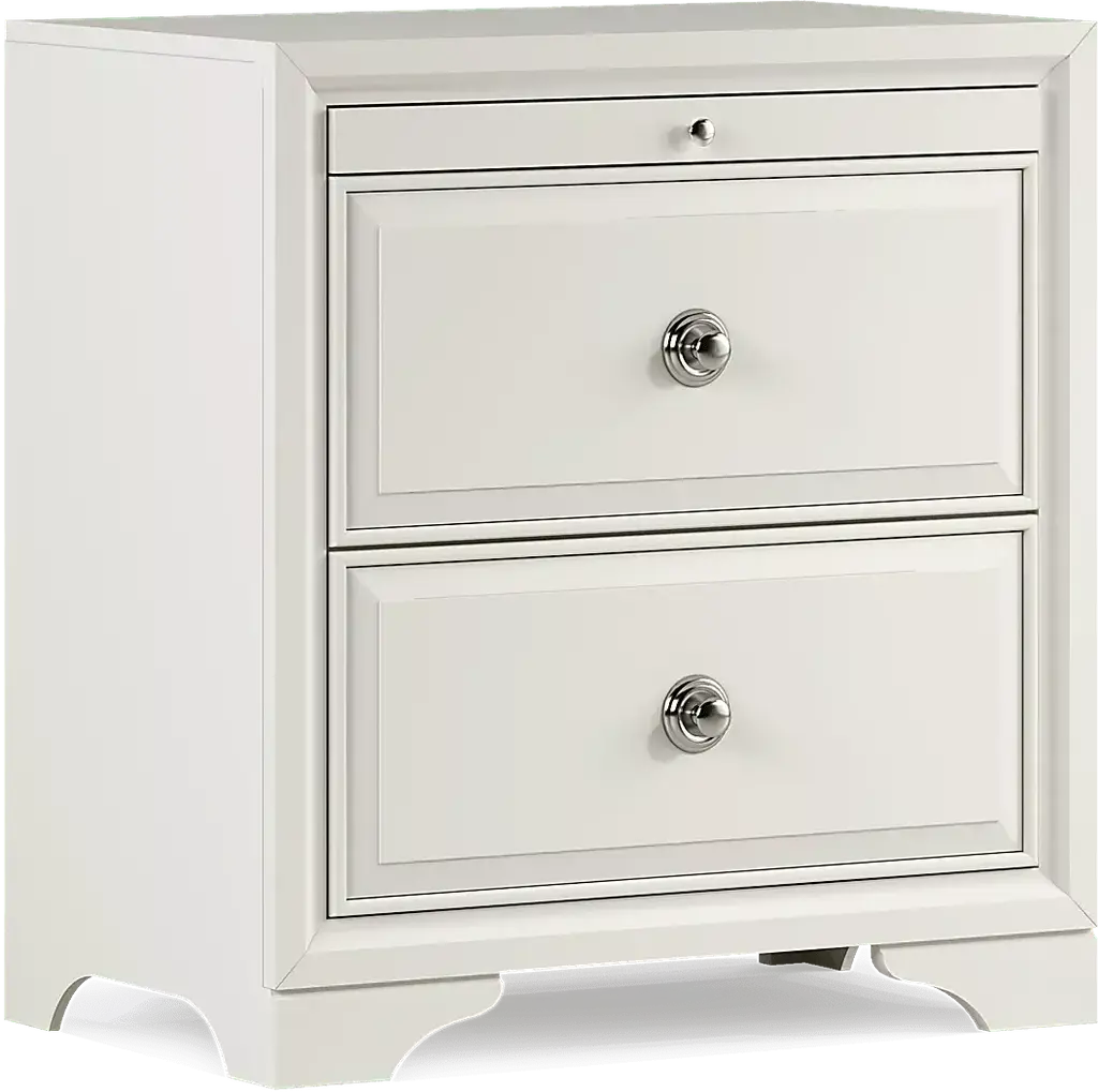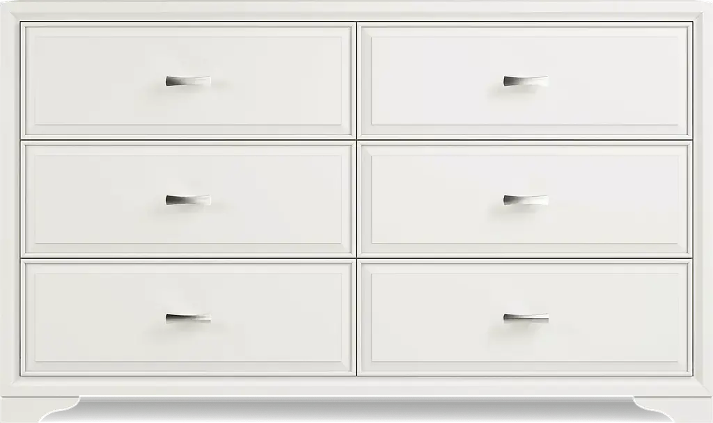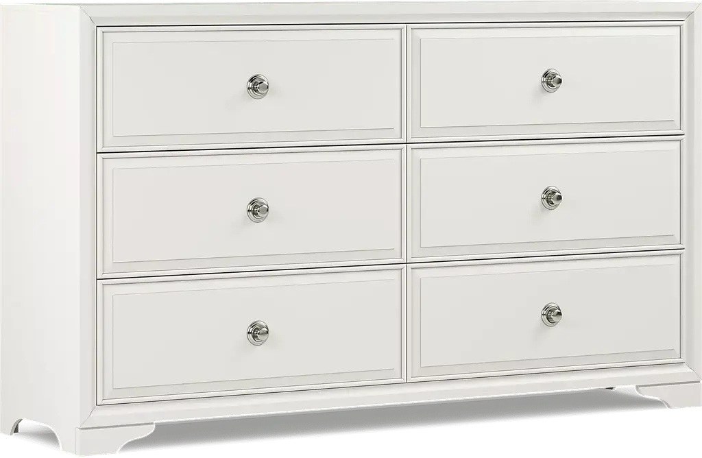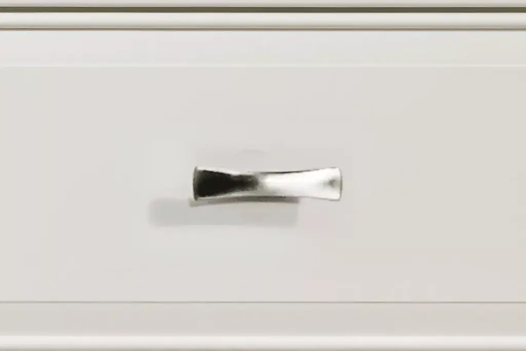 Create a stylish bedroom retreat you'll love coming home to when you select the Belcourt collection. The focal point of this group is the eye-catching bed displaying a lattice style headboard and low footboard. The bed and coordinating pieces boast straight lines creating a clean aesthetic. Interchangeable round and bar shaped hardware in brushed chrome are both included for matching pieces. This contemporary suite is crafted of birch veneers in a gorgeous white finish. Mattress and foundation (if required) sold separately. Bed shown is queen size.
