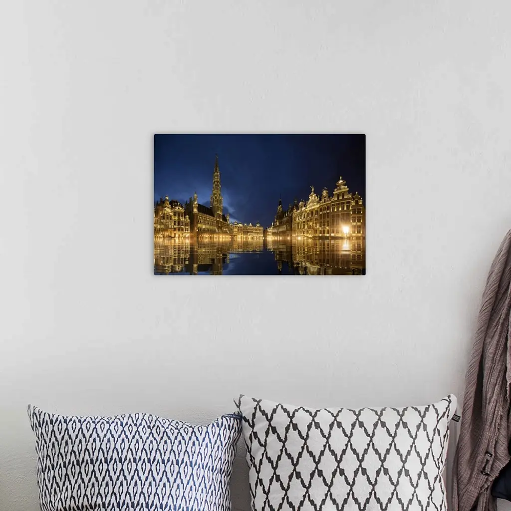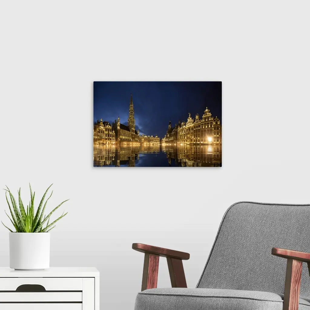 Belgium, Brussels, Grand Place Main Square Lit At Twilight