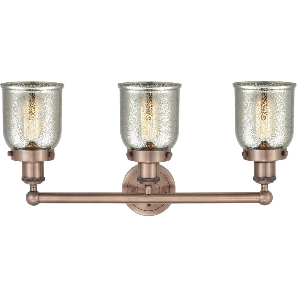 Bell 3 Light 24.5 Inch Antique Copper Bath Vanity Light Wall Light In Silver Plated Mercury