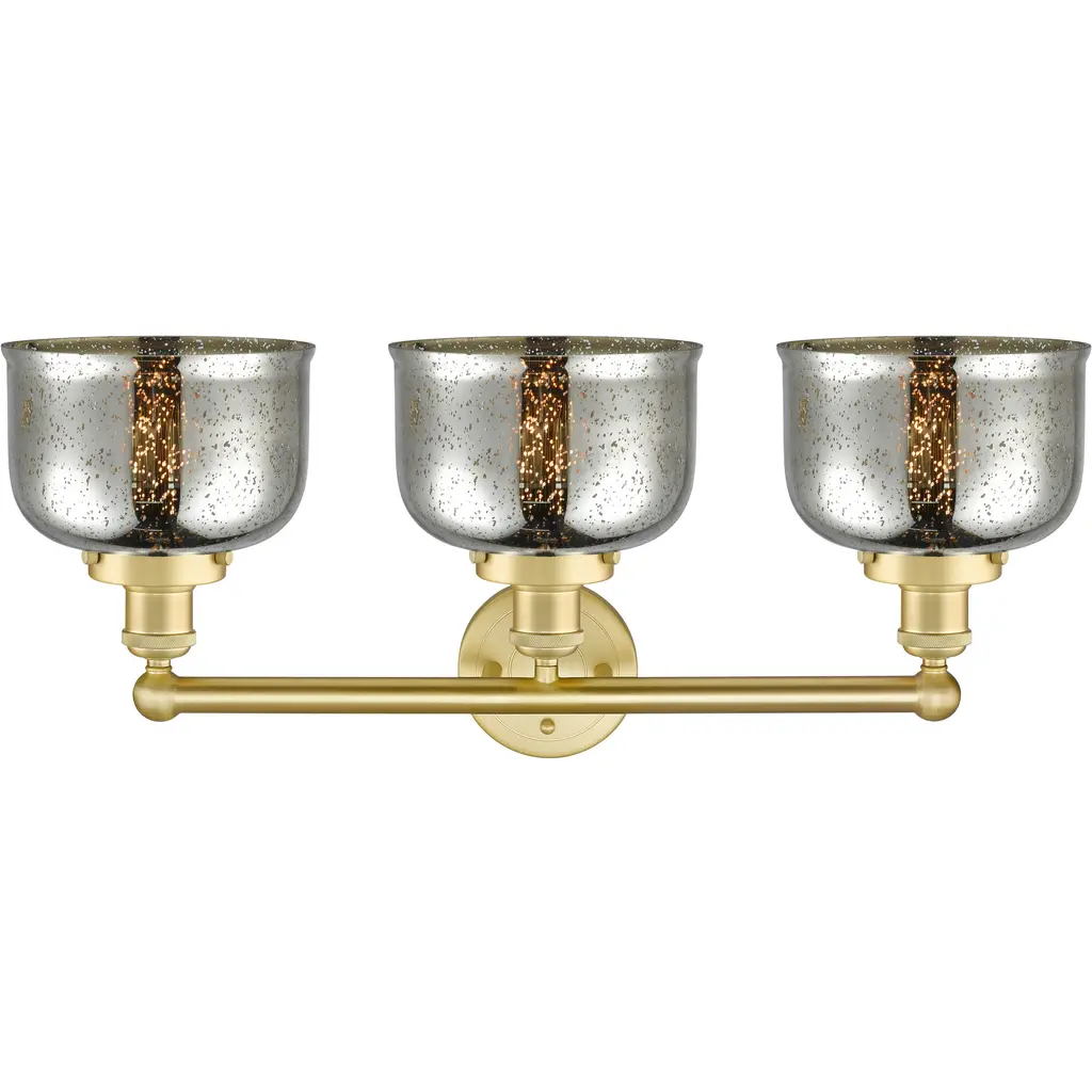 Edison Large Bell - 3 Light 25" Bath Vanity Light - Satin Gold Finish - Mercury Shade