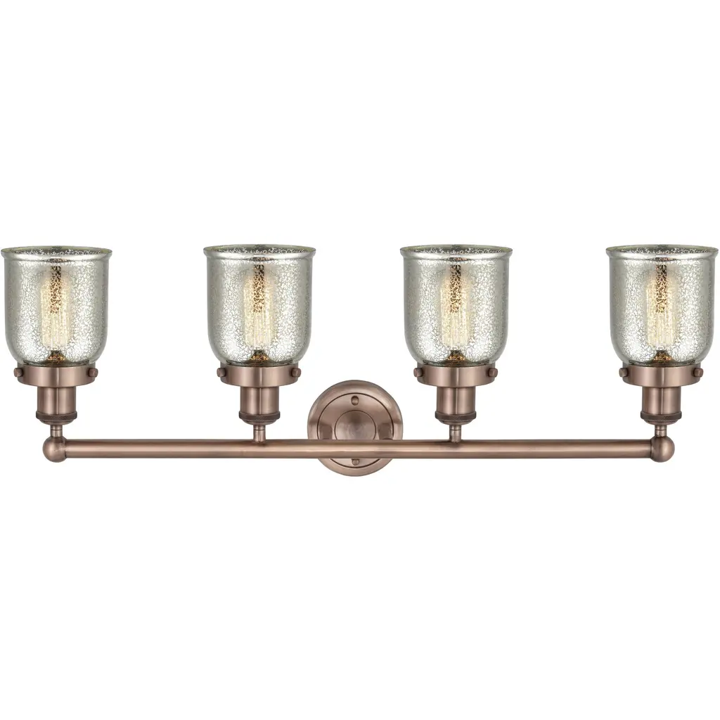 Small Bell - 4 Light 34" Bath Vanity Light - Antique Copper Finish - Mercury Shade