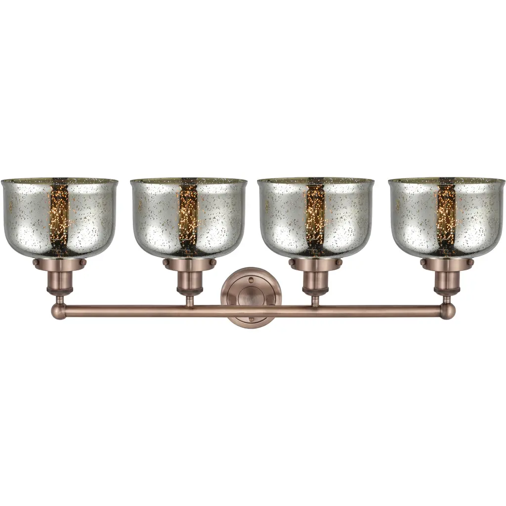 Large Bell - 4 Light 34" Bath Vanity Light - Antique Copper Finish - Mercury Shade