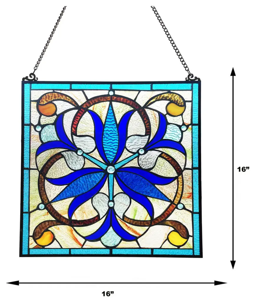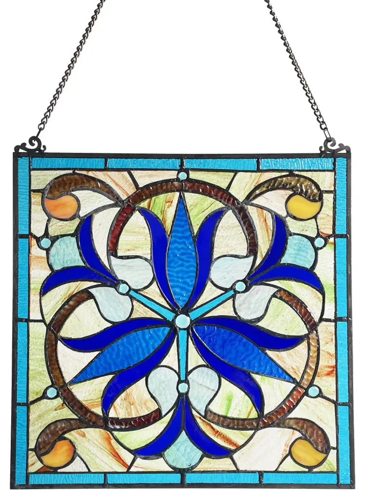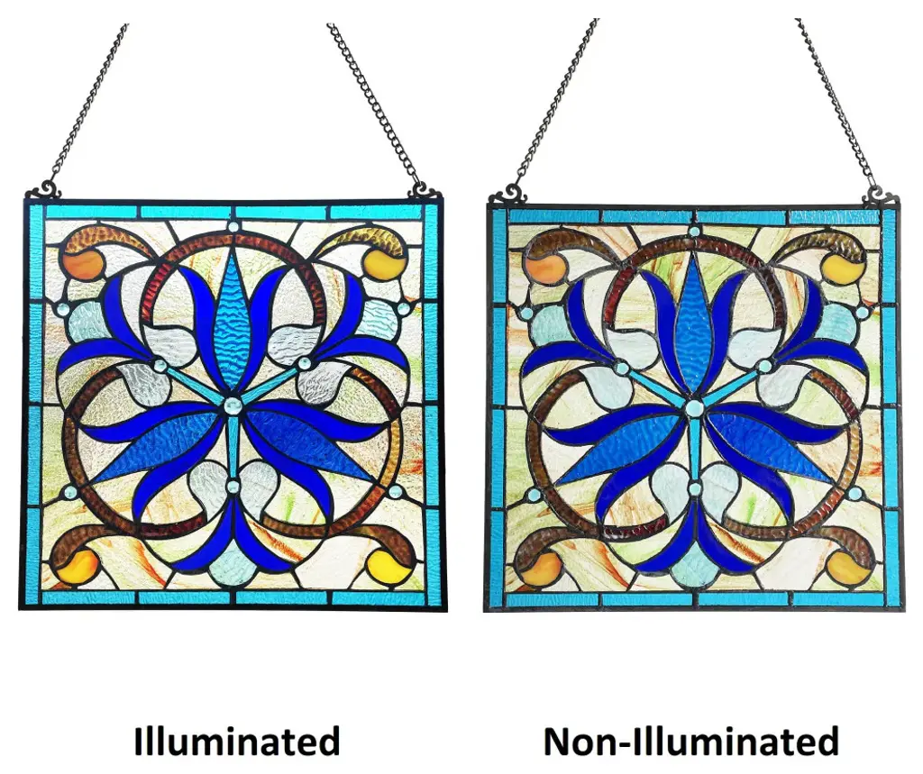 Bell-Flower, named after the featured flowers, is a beautifully designed floral-style window panel using tiffany stained glass. This piece is made up of 113 pieces of hand-cut stained art glass and 8 glass beads, expertly pieced and soldered together to create each panel. Each of CHLOE''s Tiffany-style stained glass panels is formed using the very same technique developed by Louis Comfort Tiffany in the early 1900s, using hand-cut stained art glass, each wrapped in fine copper foil and soldered together at extremely high temperatures to form each unique panel. The exact size to the nearest inch may vary, and the exact color of each glass piece may vary due to each piece being hand-crafted. The first image is with the light shining through, the second image is with no light.