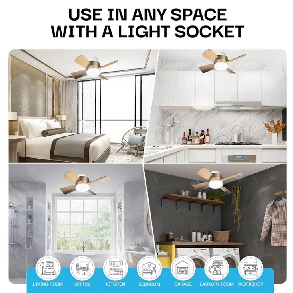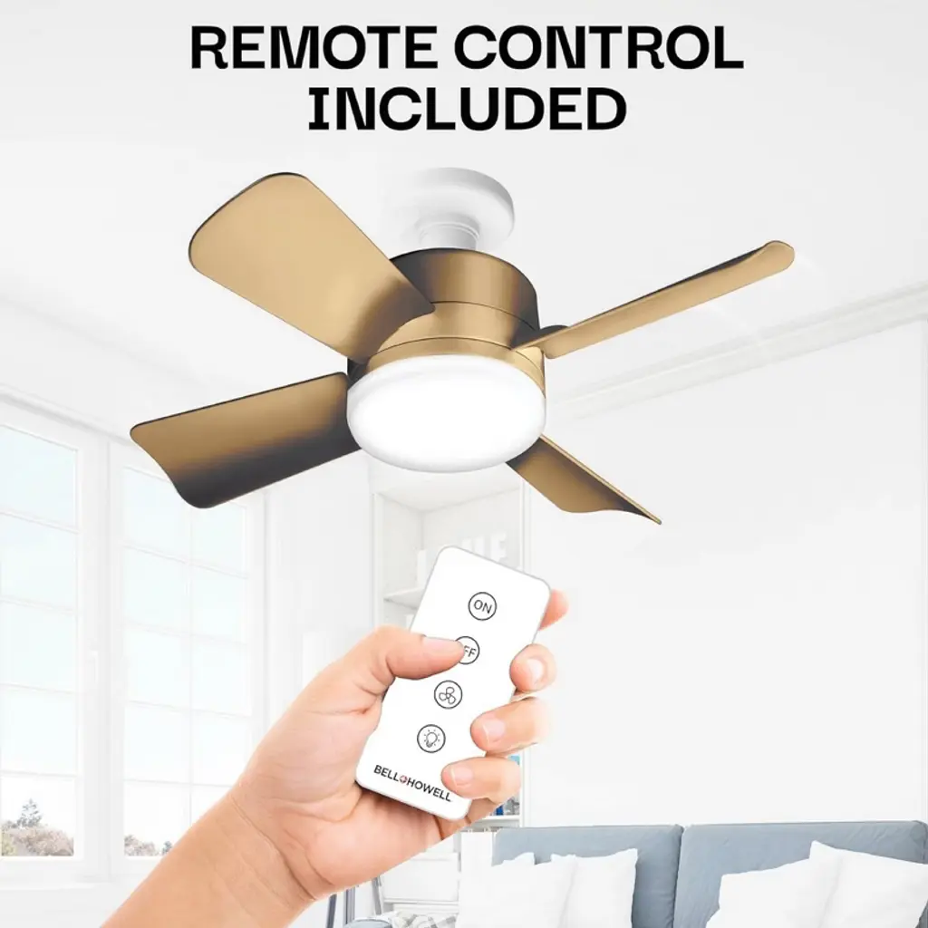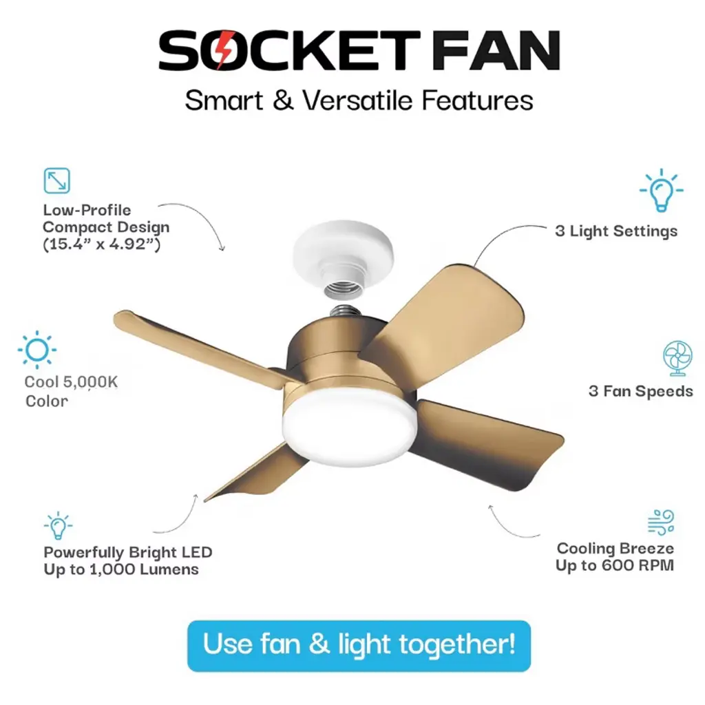 Bell + Howell Bronze Socket Fan Light – 2-in-1 Led White Light And Fan With Remote Control