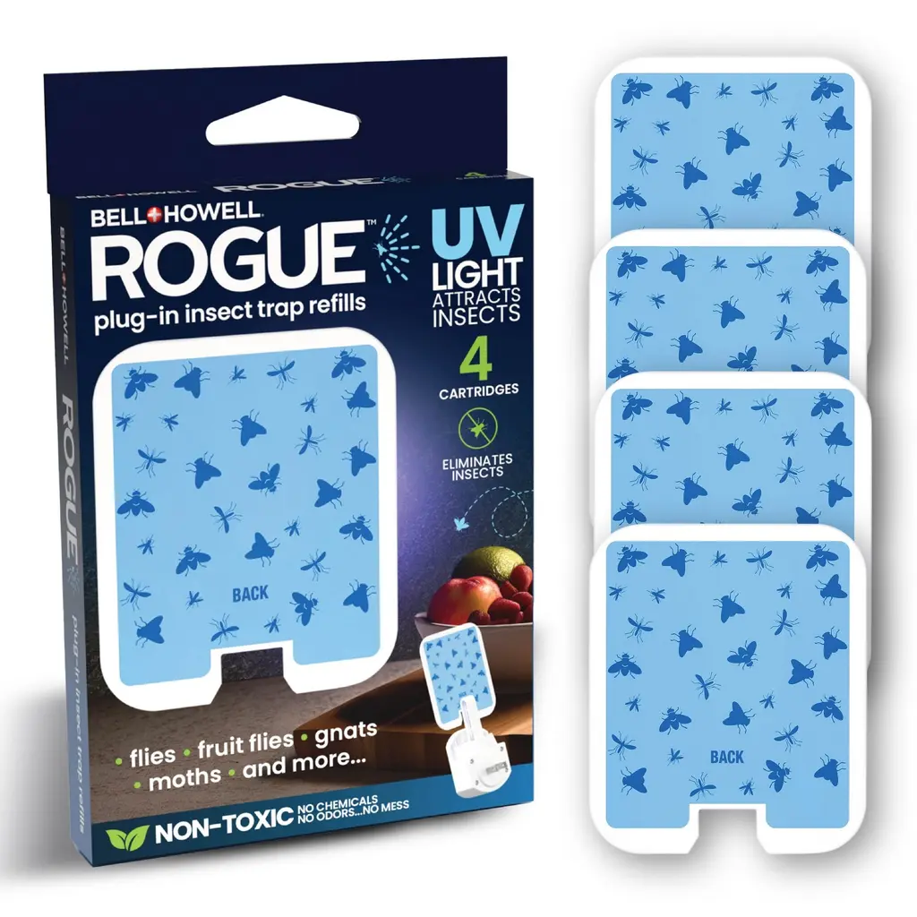 Bell + Howell Rogue 4-Pack Plug-In Insect Trap Refills - Chemical-Free Uv Adhesive Bug Capture Cartridges - Pest Control