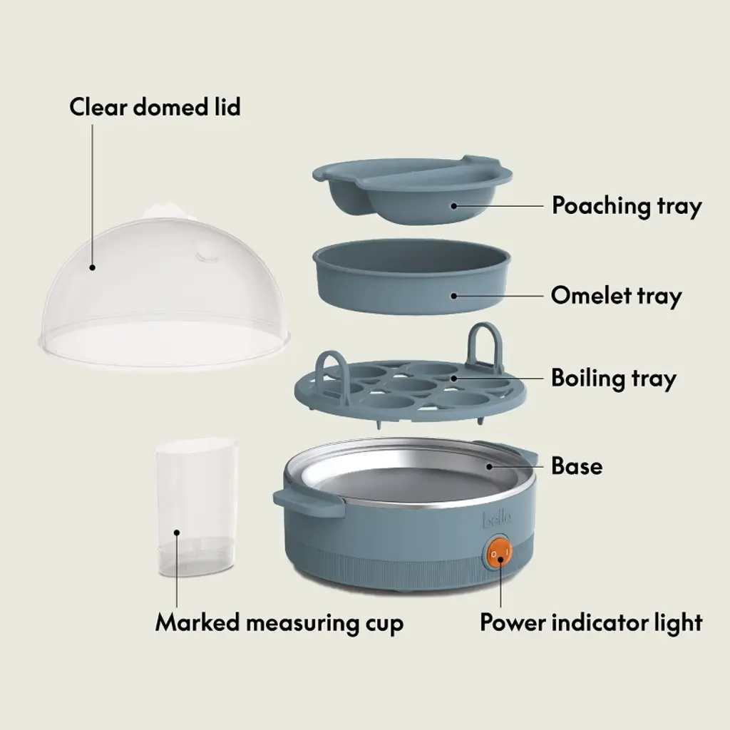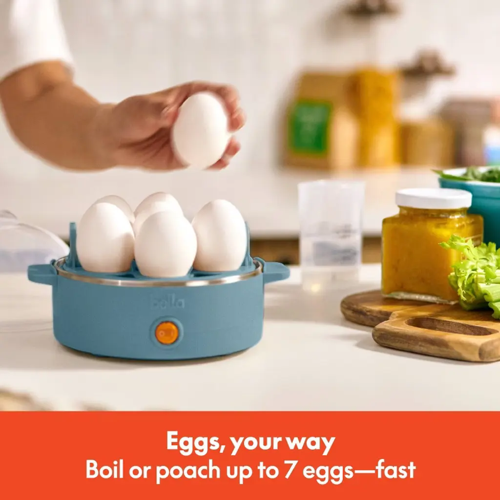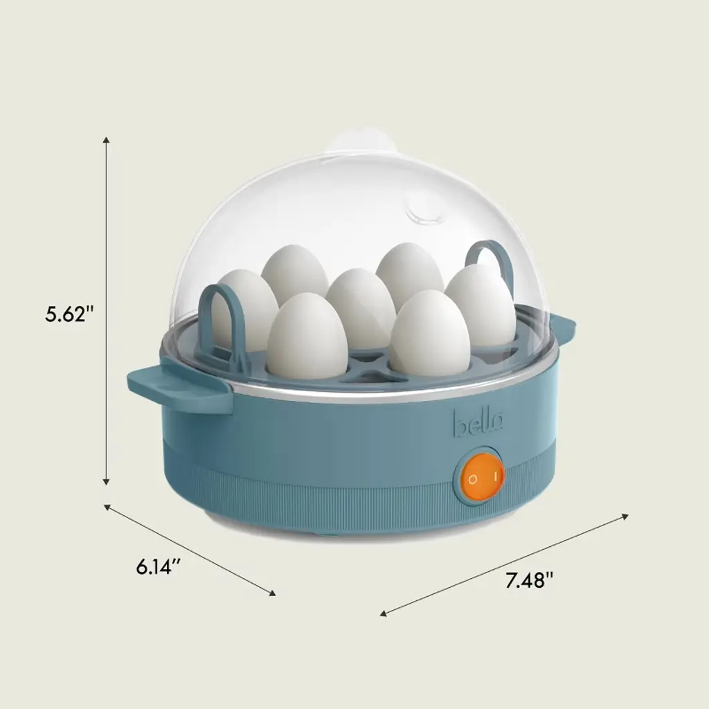 Need more protein in your life? We’ve made it devilishly easy to prep eggs for days with the bella Egg Cooker. It quickly boils or poaches up to 7 eggs at once. The clear domed lid lets you monitor your cooking progress without lifting it and it includes a handy measuring cup with water level markings for hard, medium, and soft-boiled eggs, ensuring perfect results every time. Indicator light shows when unit is on while the thermal sensor automatically shuts it off when cooking is complete. Plus, cleanup is simple: the lid, measuring cup with egg piercing pin, omelet tray, poaching tray, and egg holder are dishwasher safe.