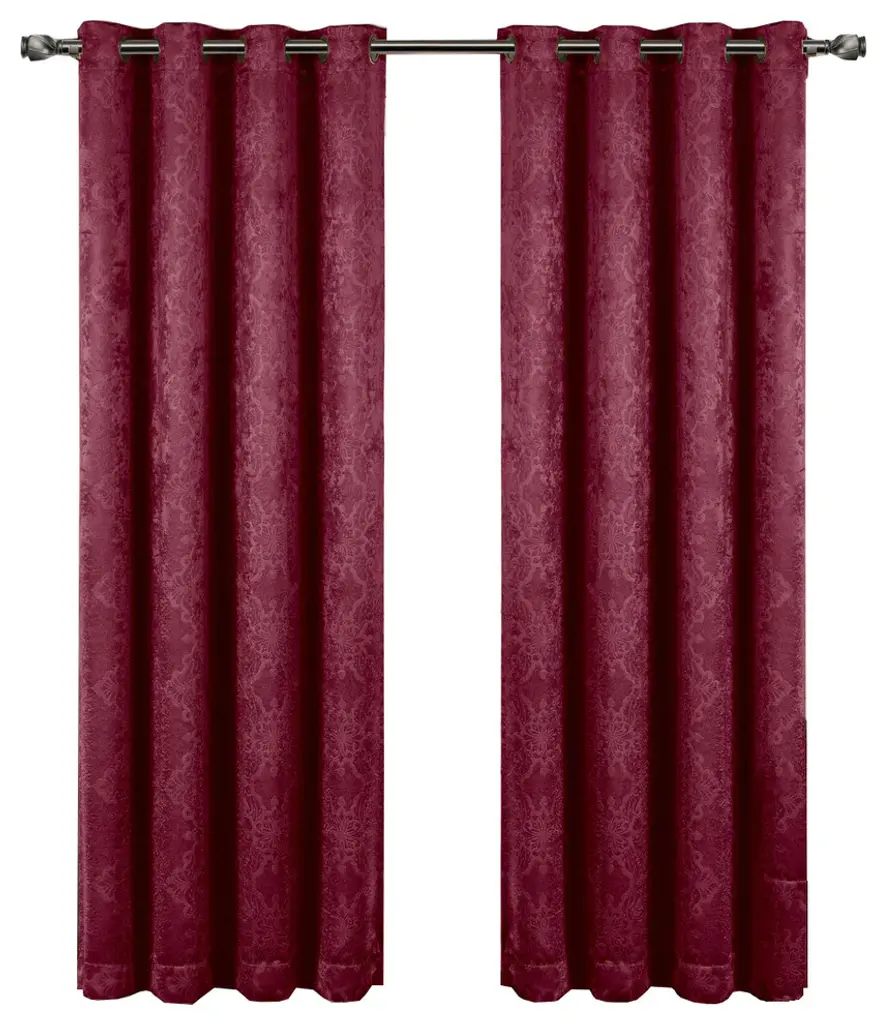 Bella Blackout 2Pc Embossed Grommet Panels, Burgundy, 104"x63"
