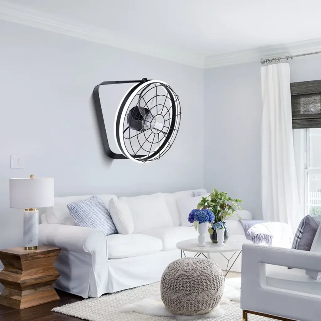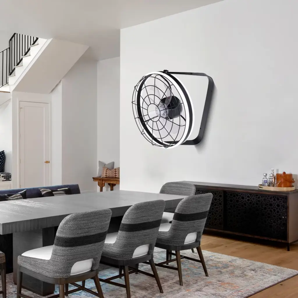 Elevate your space with our stylish black wall-mounted fan, featuring a sleek, flat round design that seamlessly blends into any decor. The fan is equipped with an adjustable LED light strip around the edge, allowing you to customize the ambiance with a color temperature range of 3000K to 6000K. With six speed settings and a reversible motor, this fan ensures optimal airflow and comfort in any room. It's the perfect addition to your home or office for both functionality and style.