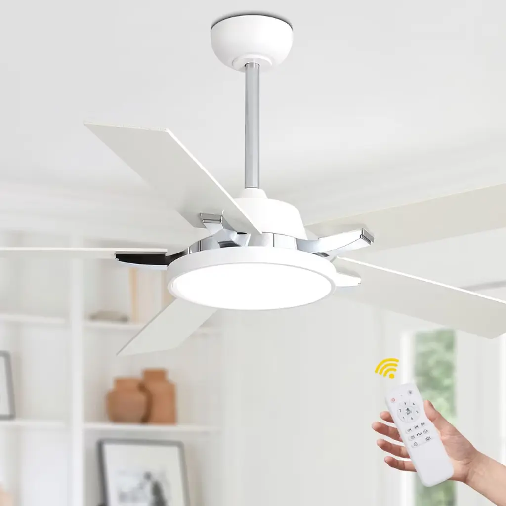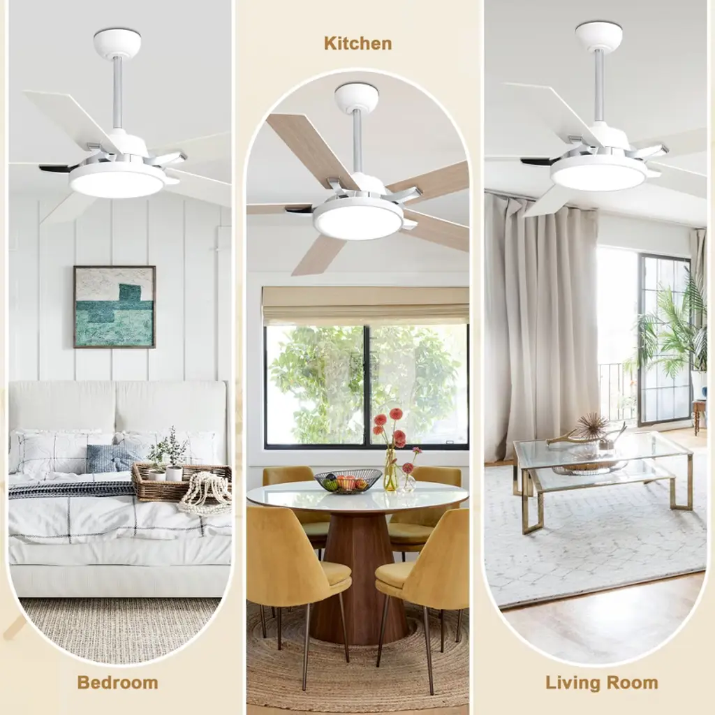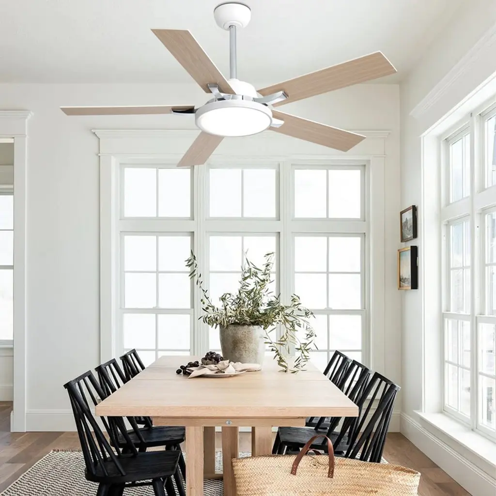 Meet the Modern 52" Ceiling Fan, a stunning addition that effortlessly elevates any room it graces. Boasting eight expansive fan blades and integrated LED lighting with adjustable brightness settings, this fan seamlessly blends style and functionality. With six speed options and a convenient reverse function, it ensures year-round comfort at your fingertips. Take charge with the user-friendly remote control, allowing you to independently adjust both the light and fan settings. Complete with three suspension rods of varying lengths, this fan offers versatile installation heights to suit your unique room dimensions. Ideal for large spaces and adaptable to traditional, modern, or industrial decor styles, this fan effortlessly marries aesthetics with practicality, making it a standout choice for your home.