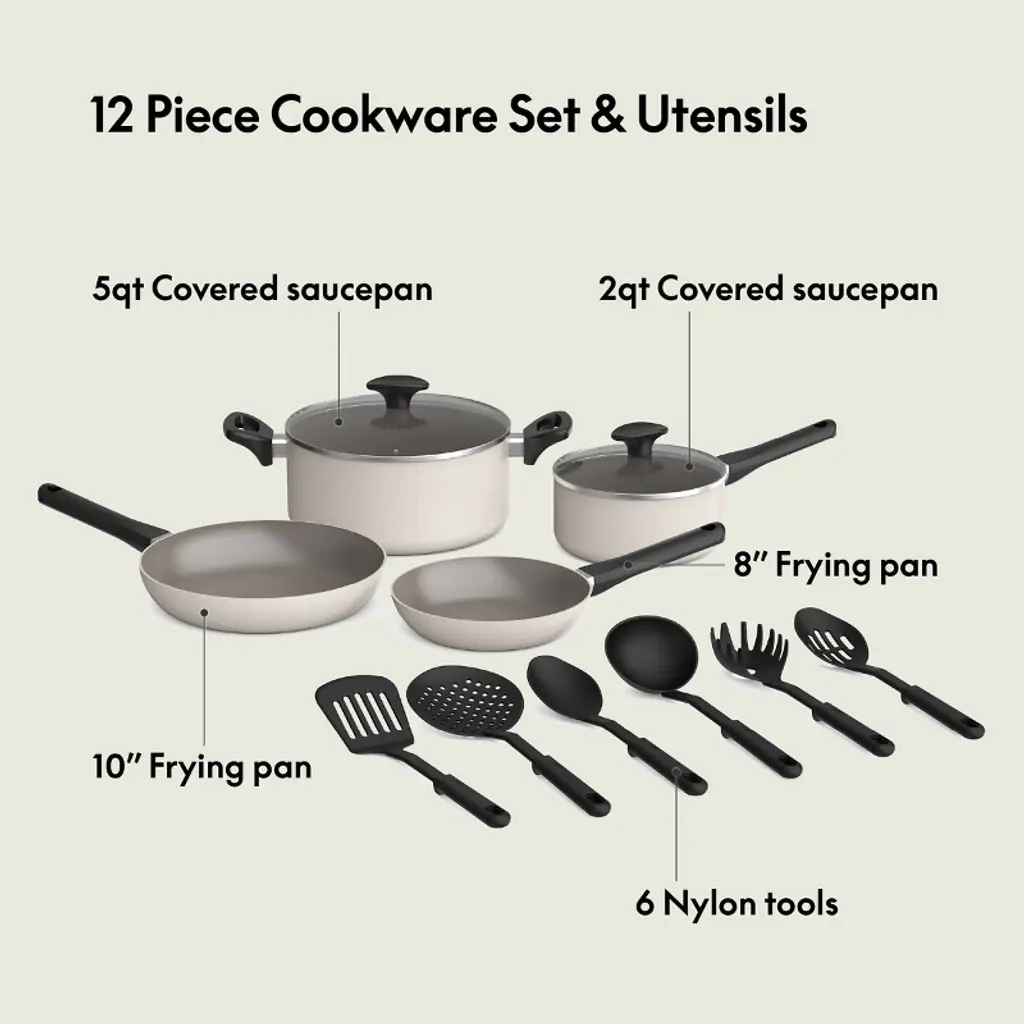 Bella Housewares 12pc Nonstick Kitchen Set Oatmilk