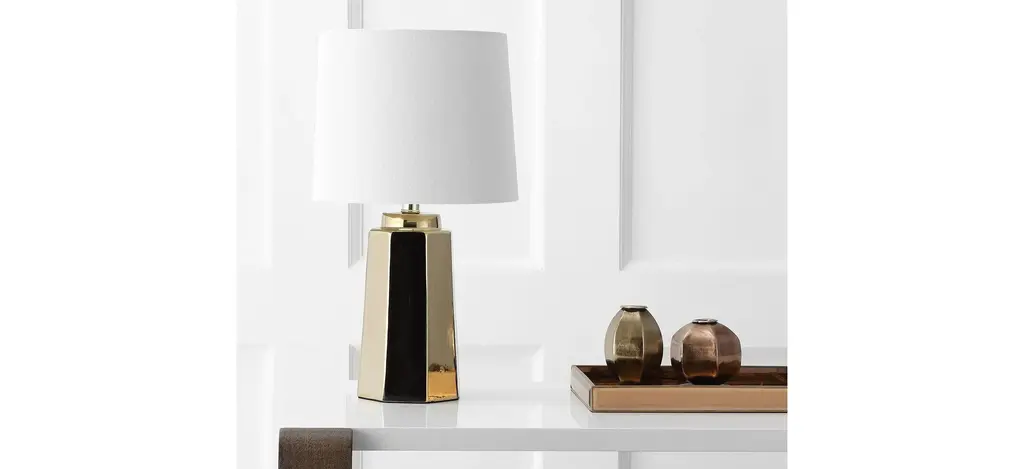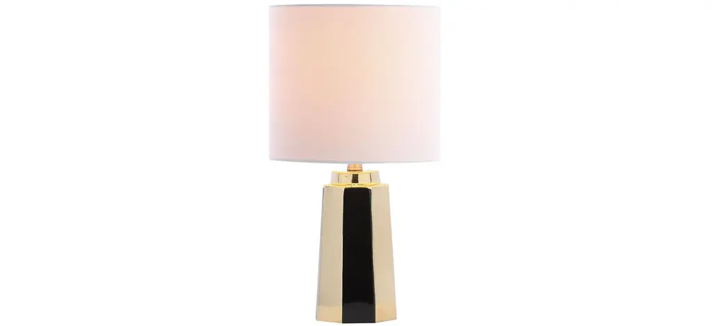 Make a grand statement with this dynamic Bella Table Lamp. Inspired by coveted modern sculpture, it is the jewel of any living room with its plated gold finish and designer style. Its sleek white shade lends a soft, diffused glow.