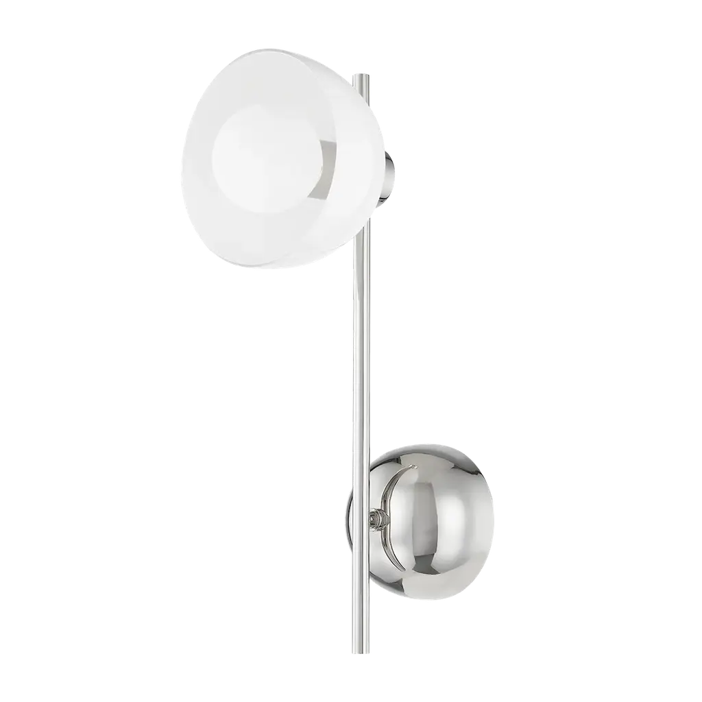 Cool contrast and fine form play well together in Belle's striking silhouette. The aged brass frame pops against the glossy white shades, featuring exposed bulbs for a futuristic effect. Available as a chandelier, linear, 1 or 3-light wall sconce, and floor lamp.
