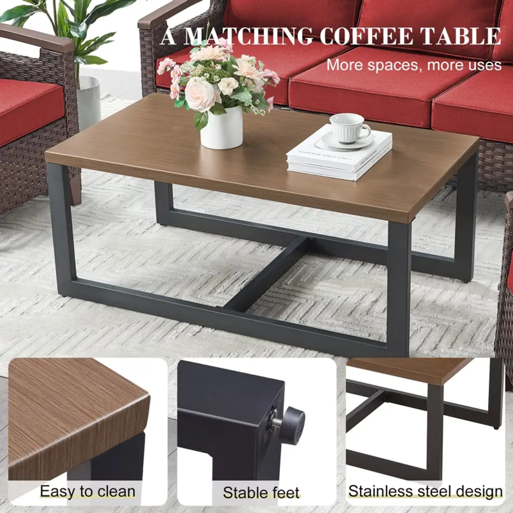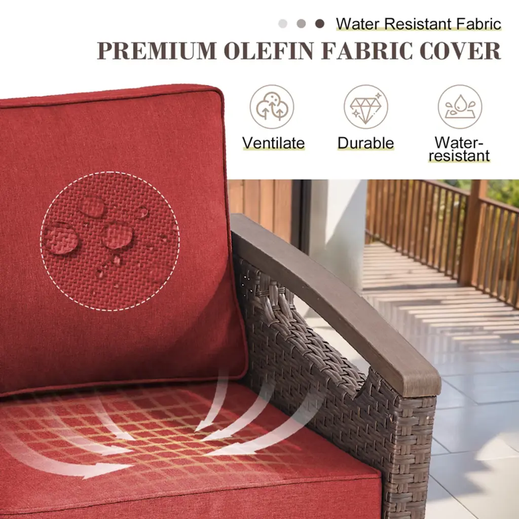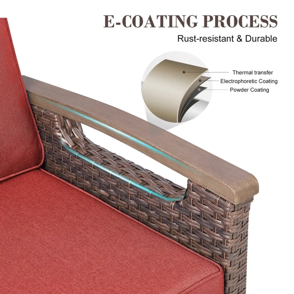 Upgrade your outdoor living with this stylish 4-piece patio furniture set, designed for both elegance and comfort. The set includes 2 swivel rocker chairs, a 3-seat sofa, and a coffee table, making it perfect for porches, patios, decks, or balconies. The chairs feature a 360¡ã swivel and smooth gliding motion for superior relaxation, while the premium powder-coated metal armrests with a hollow design add modern luxury and durability. Sink into ultra-comfort with 4-inch thick cushions filled with high-resilience sponge and doll cotton, wrapped in water-resistant Olifen fabric for lasting outdoor use. The handwoven PE wicker closely mimics natural rattan while being fade-resistant and built for long-lasting performance. With warehouses in both eastern and western US, we offer quick customer support and fast replacements for any issues. This chic, weather-resistant set combines luxurious design with superior comfort, making it ideal for creating a cozy yet sophisticated outdoor retreat perfect for relaxing, entertaining, or enjoying your morning coffee.