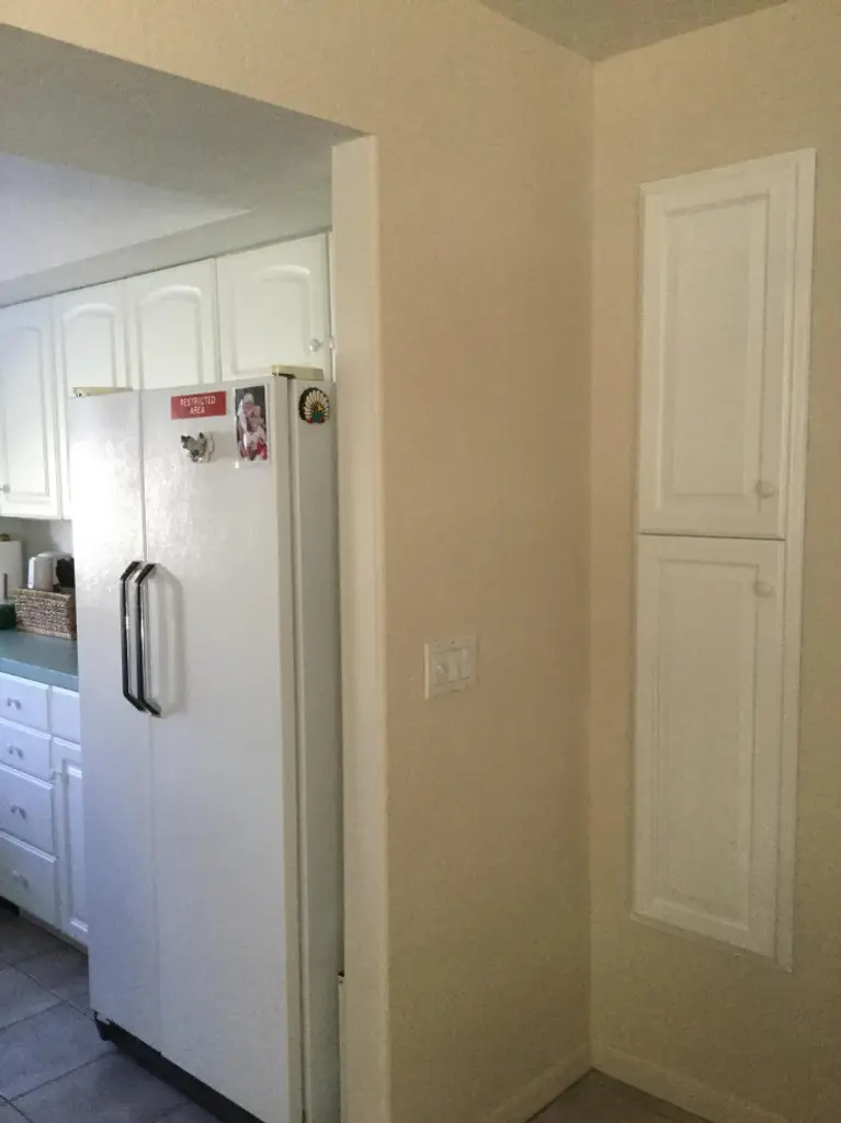 Recessed in the wall between studs! Easy installation. Simply put construction adhesive (not included) on the back side of the frame and push it into the opening in your drywall. Fully adjustable glass shelves. Concealed hinges, doors are left undrilled for a knob or handle so you can mount them to open either direction. Solid maple doors. Ships in two sections which screw back together before installation. Proudly made in Sarasota, FL. Framing in the wall around the opening is not necessary.