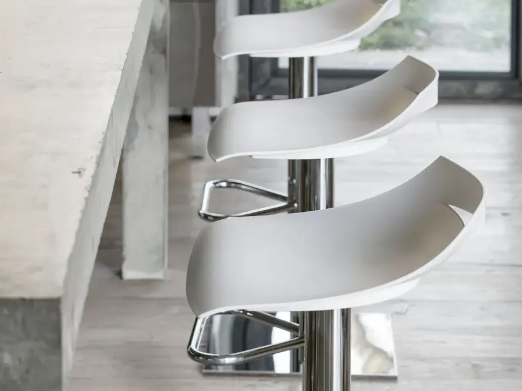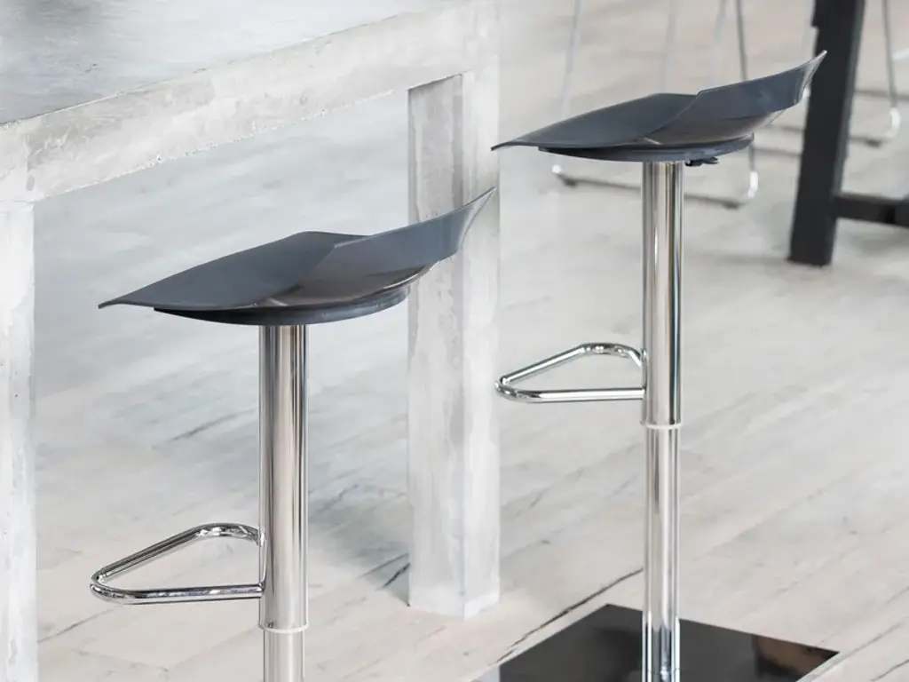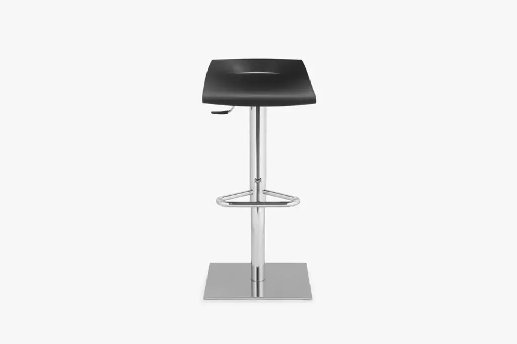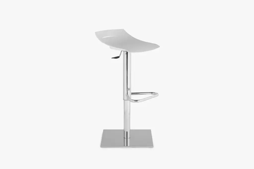 The BEN stool has a design inspired by a sheet of paper that rests on the metal structure and is shaped on it. On the backrest a cut creates a handle that makes it easier to lift and move and gives it a distinct character. Available in the version with steel frame and gas lift.