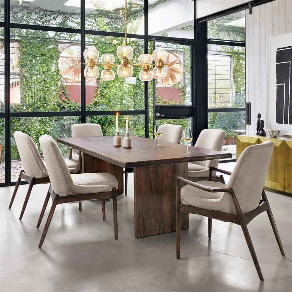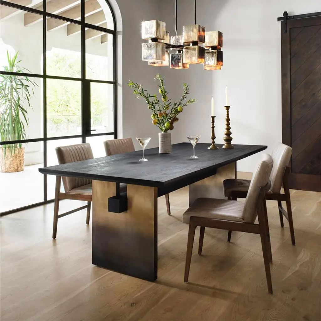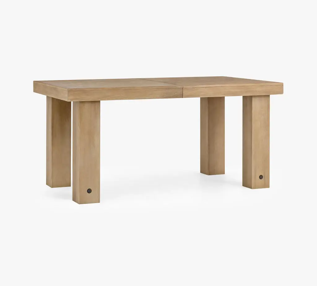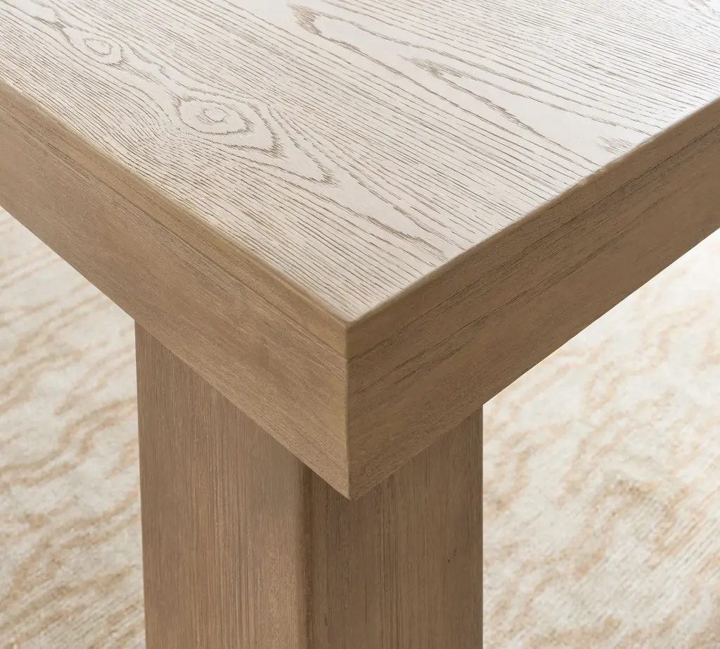 Inspired by an early 20th-century worktable that belonged to one of our designer's great-grandfathers, our table's rustic wood frame in our exclusive Seadrift finish features handcrafted details like mortise-and-tenon joinery. Straight legs add a modern update.