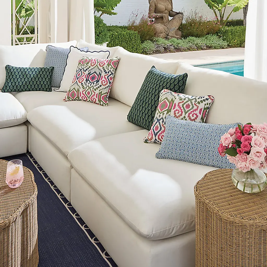 Ikat is one of those decorative go-to's that feels forever young and fresh. Our Benjamina Multi InsideOut Performance Fabric's bold geometric design is jacquard loomed of soft, ultra-durable UV polyester blend in bold hues of fuchsia, green, persimmon and navy on a thick ivory ground. This cleanable, family-friendly fabric by the yard is perfect for upholstery, drapery, and decorative pillows in busy, spill-prone spaces like breakfast nook, family room, porch and patio. Ballard Designs Performance Fabrics by InsideOut features: Ballard offers free fabric swatches. Shipping and Processing fees apply. Ten swatches maximum. We’re sorry, cut fabric is non-returnable.