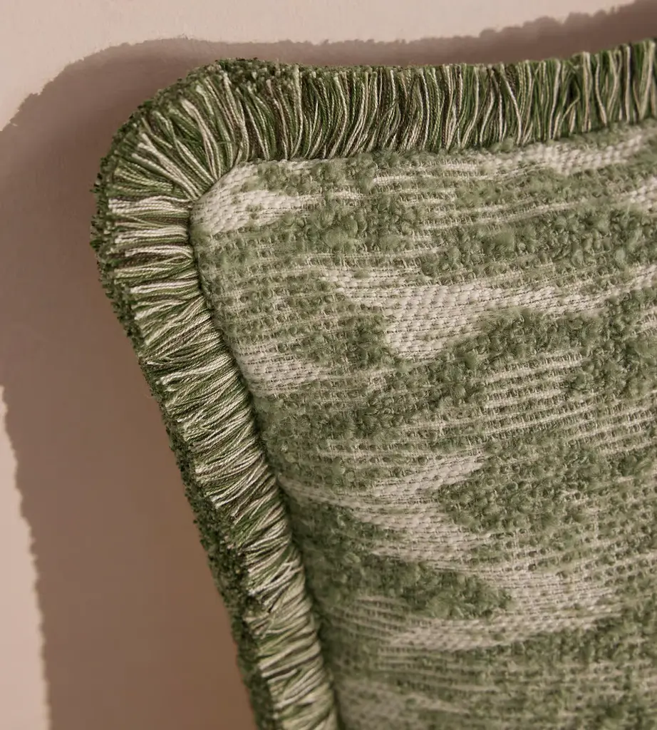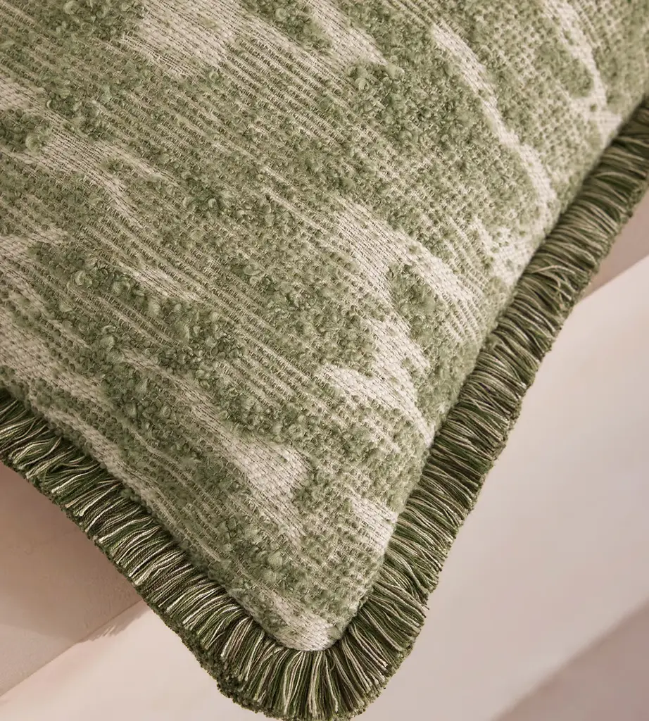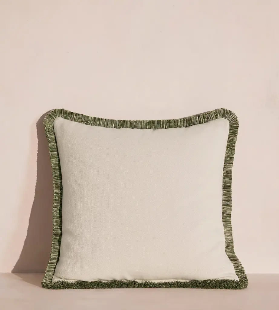 The Bennet cushion is made in the UK and features a woven design on one side with a plain reverse. Taking inspiration from the coastal surroundings and natural textures of Little Beach House Barcelona, this tonal square cushion is finished with decorative eyelash fringing in a complementary hue. All of our cushions/throw pillows come with a feather and down Okeo-tex certified pad.
