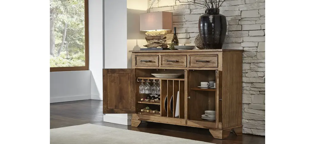 An updated take on French Country, Bennett's curved backs and pedestals give this dining collection a slight elegance while retaining an aura of comfort and ease. Made of solid birch and poplar, Bennett boasts a beautiful smoky quartz ?nish, layered multiple times for a slight glow, with similarities to topaz.
