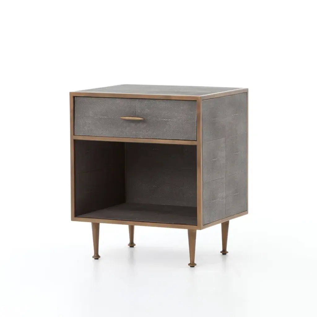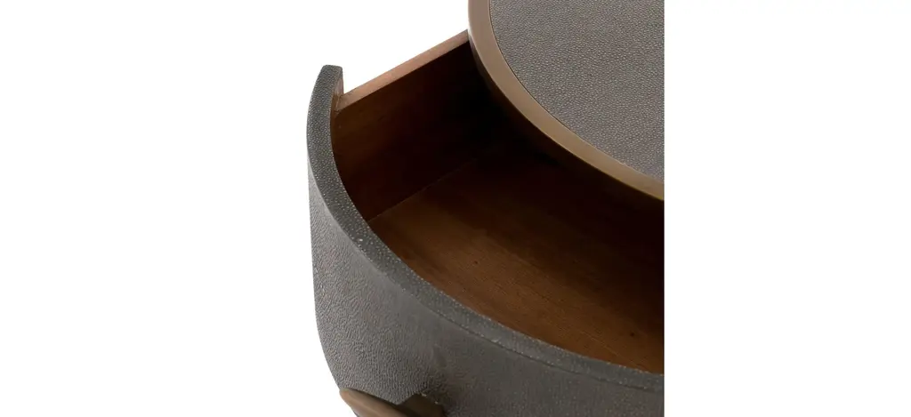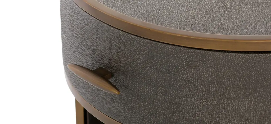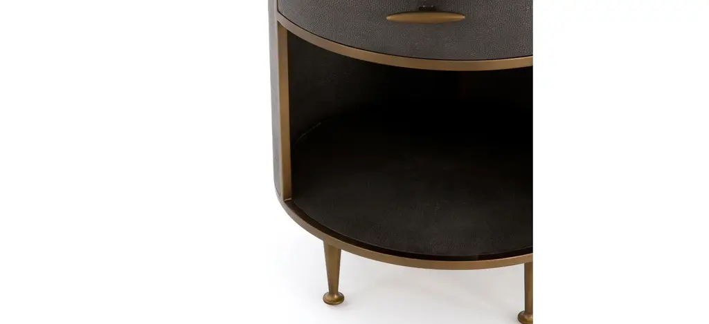 Mid-century shaping takes on new intrigue with the Bentley Round Nightstand. A perfectly curved bedside table with stainless steel accents and handy drawer storage.