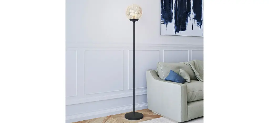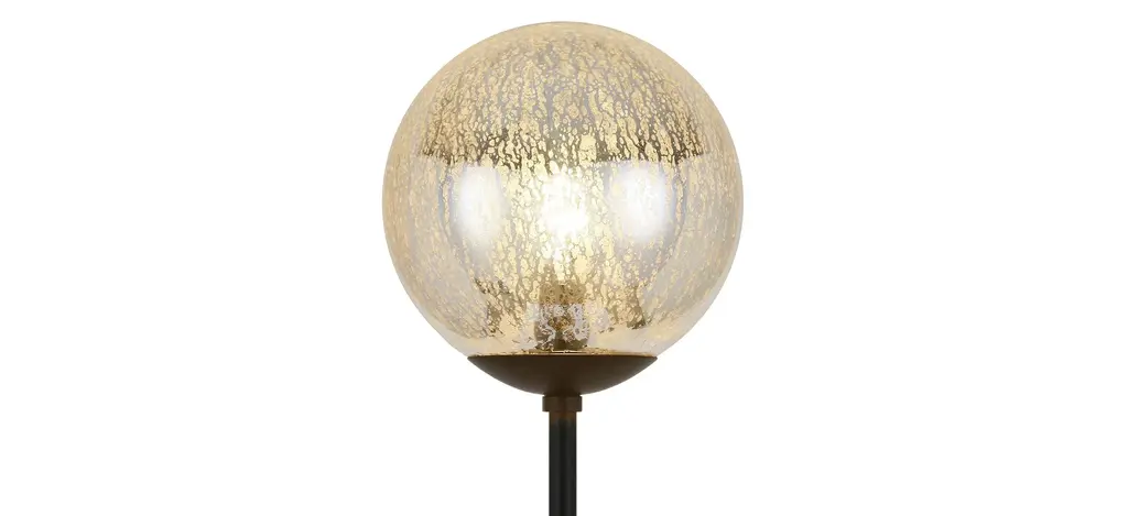 This floor lamp uses mercury glass paired with blackened bronze hardware to evoke understated glamour. The blackened bronze tones keep this piece understated but refined. It's paired with a hand-made mercury glass shade.