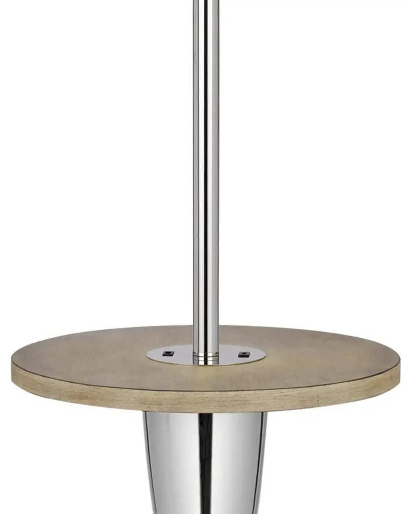 Attractive and uniquely crafted, this floor lamp brings softly lit charm to any space in your home. Included in this versatile package is a deeply glossy silver finish, a convenient wood table, a USB charging port for phones and assorted tech, and a strikingly modern aesthetic. Check out our Charlie collection for the full set
