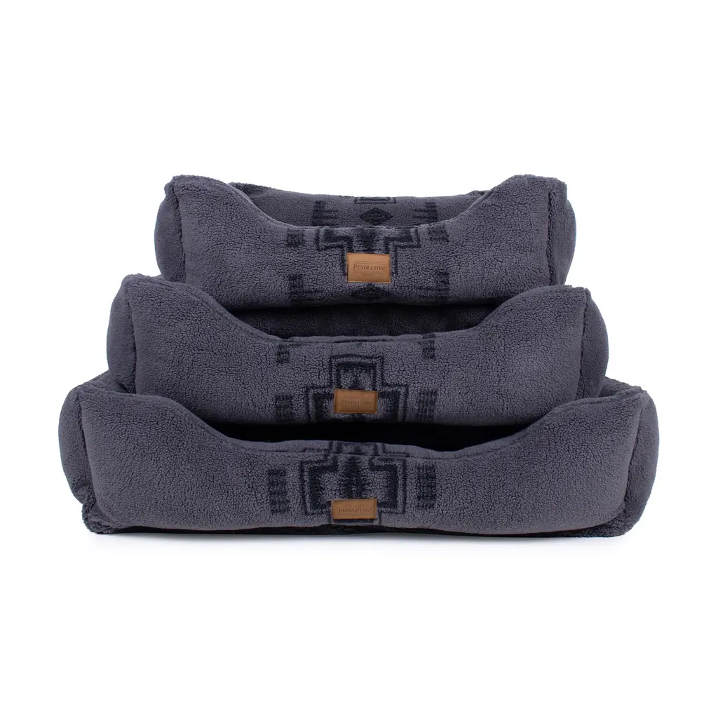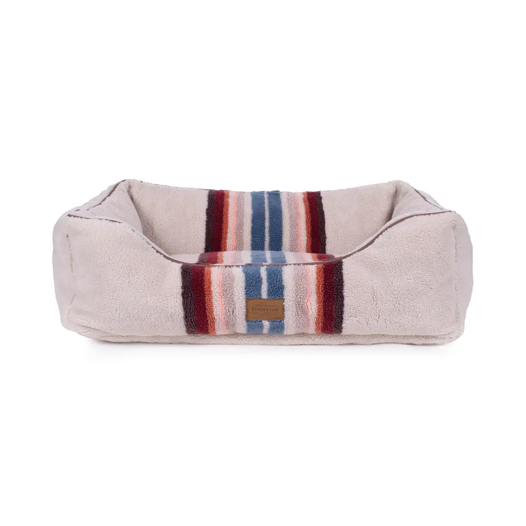 Upgrade your dog's bed with the Pendleton Berber Kuddler! Made with non-shearing berber and overstuffed with recycled MemoryFiber™, this bed offers maximum support and comfort perfect for home, kennels, or road trips. The removable, machine-washable cover features a blue and brown plaid design inspired by mountain peaks. Suitable for most pets, but consider sizing up for extra room. Highlights