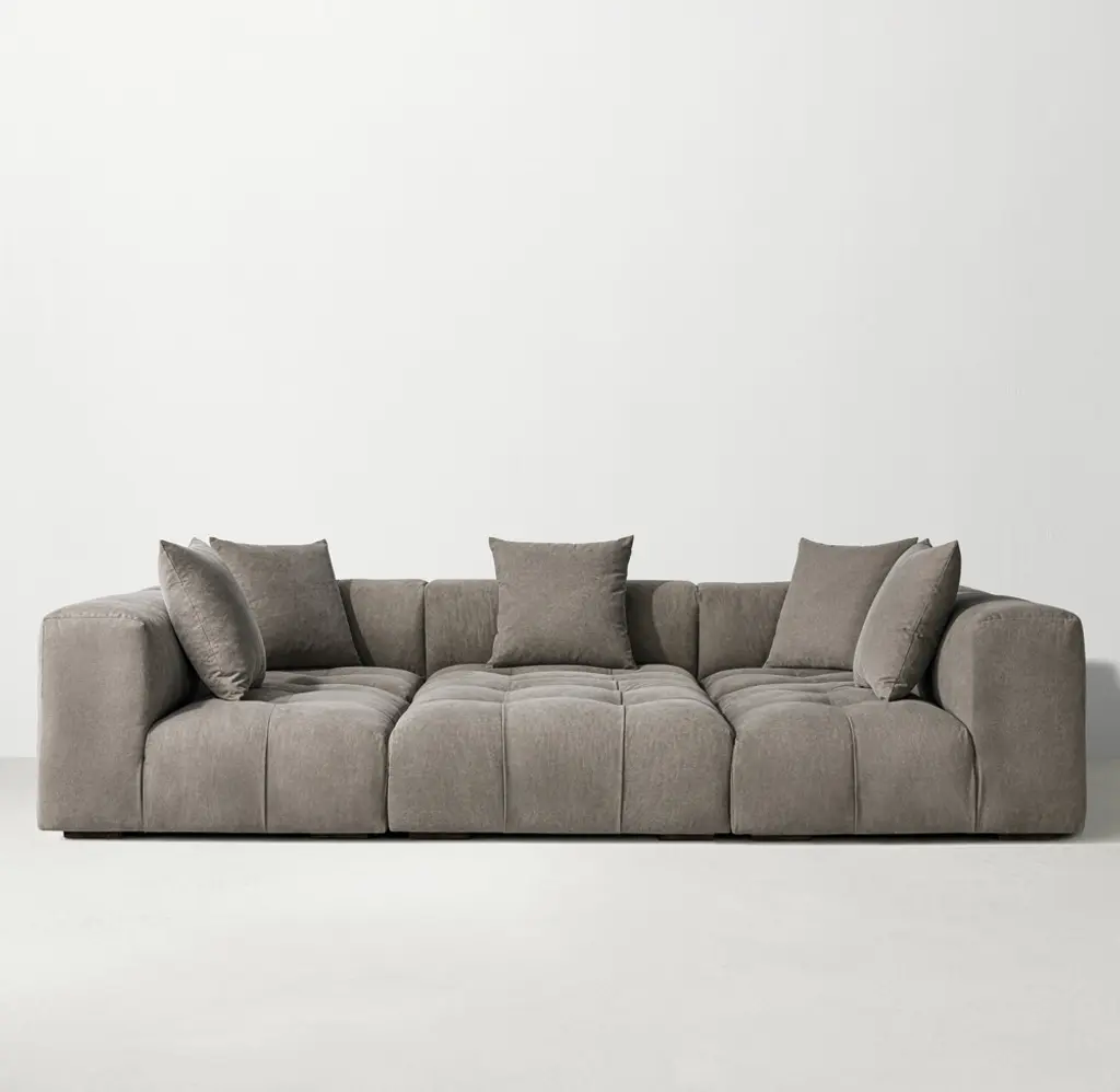 Generous feather-and-down construction and the low-slung silhouette of our tufted lounge seating offer expansive comfort and modern appeal. Modular components are available individually, allowing you to customize the configuration of your choice.