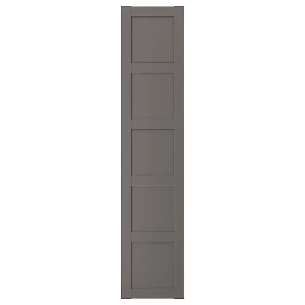 BERGSBO Door - dark gray 19 1/2x76 5/8 ". 10-year Limited Warranty. Read about the terms in the Limited Warranty brochure. The door can be hung to open either right or left. The design of BERGSBO is a modern take on a four panel door with straight, no-frills frames. Fits with PAX wardrobe system.
