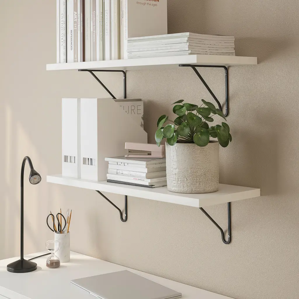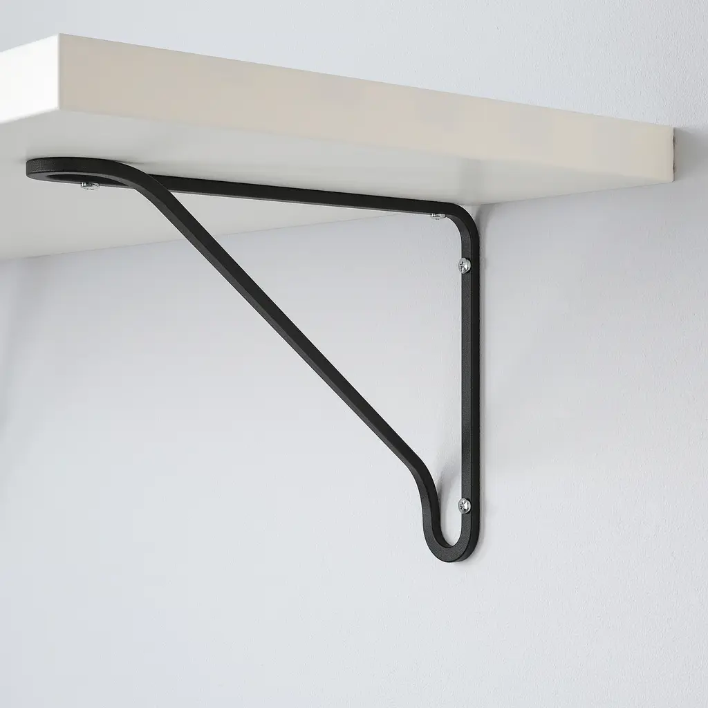 BERGSHULT / FÖRLÄGGARE Wall shelf - black/white 31 1/2x11 3/4 ". With a wall shelf, you make the most of the wall area, while freeing up space on the floor. The shelf carries a max. of 22 lbs when properly mounted on the wall. Screws to mount the bracket to the shelf are included.