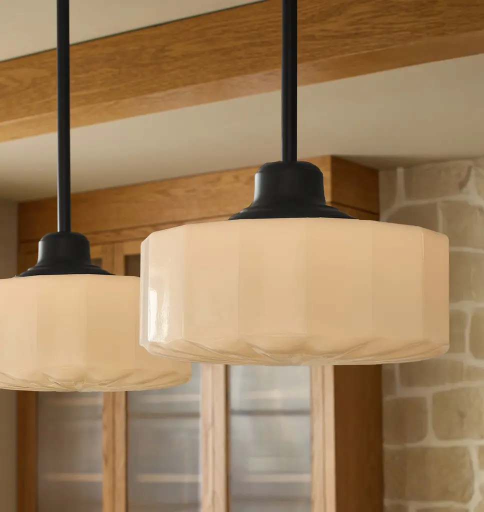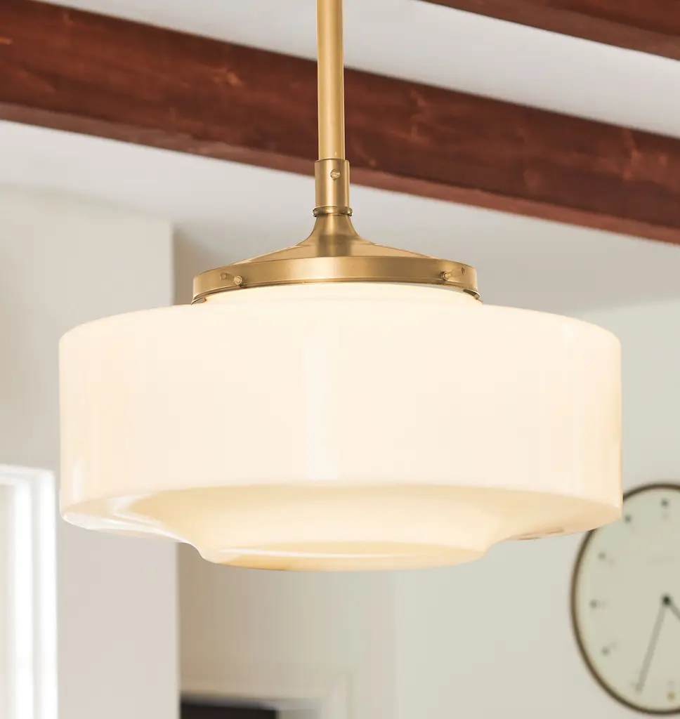 Designed in Portland, the Berkshire family takes an updated look at traditional Colonial style. Though it speaks the familiar Colonial design language, we've updated the vernacular by compressing the curves on its elegant candlestick arms and elongating its signature shades. Offering a contrasting look with finish and shade, this Rejuvenation exclusive design is available in multiple lengths and makes a statement in dining rooms, entryways, and living spaces. Product Specifications Fabric shade Oil-rubbed Bronze finish, steel fixture Aged Brass finish, brass fixture Hang straight ball joint accommodates sloped ceilings up to a 40 degree angle Clean with a soft dry cloth; avoid the use of harsh cleaners or abrasives, especially ammonia based cleaners Hardwired; professional installation recommended Suitable for indoor use (UL Rated Dry) Imported