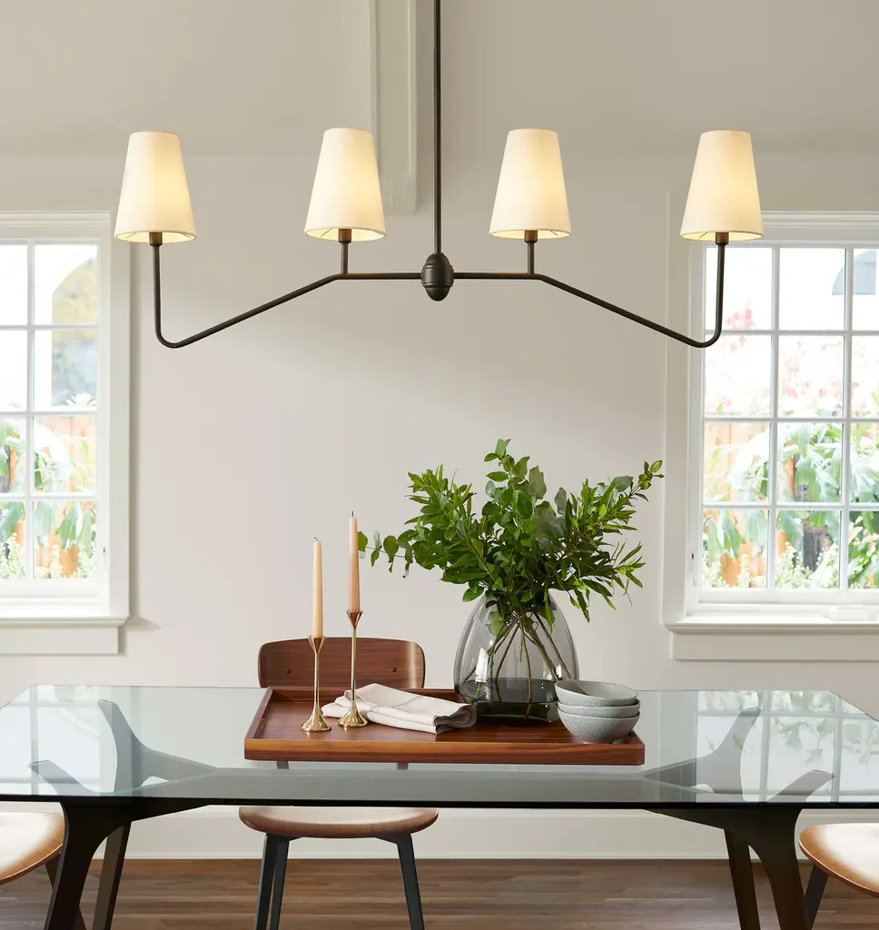 An updated take on traditional American Colonial design, Berkshire features elegant candlestick arms and linen shades.