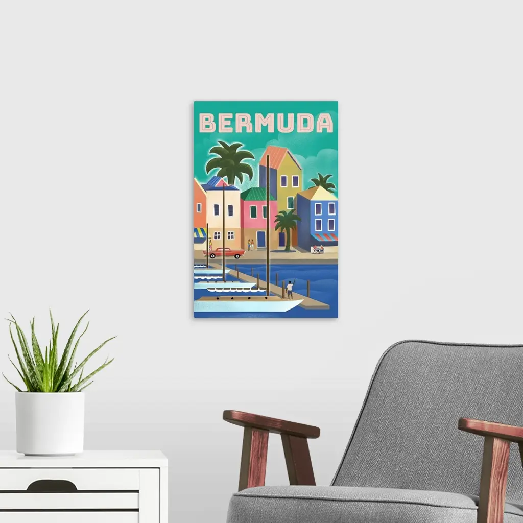 Bermuda - Waterside Dock - Lithograph wall art for home and office decor. Discover canvas art prints, photos, mural, big canvas art and framed wall art in GreatBigCanvas.com's varied collections.