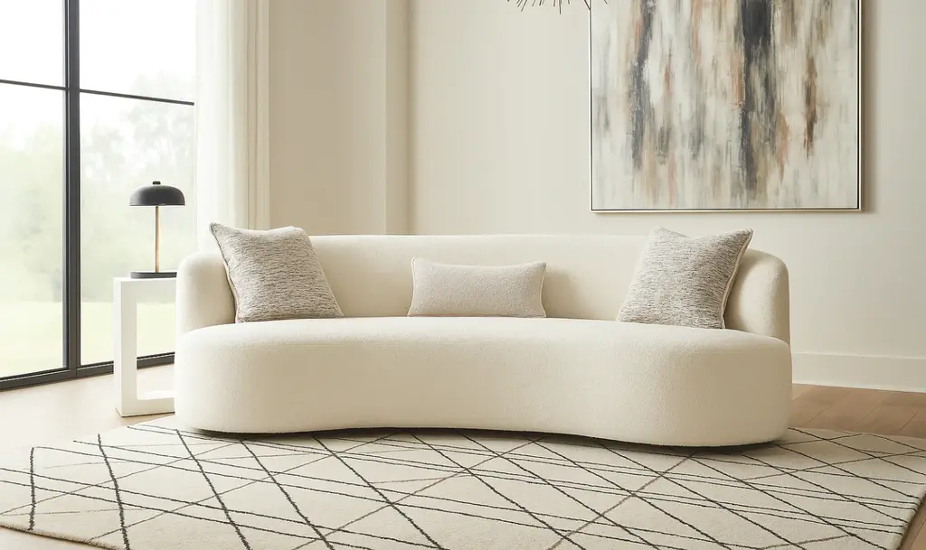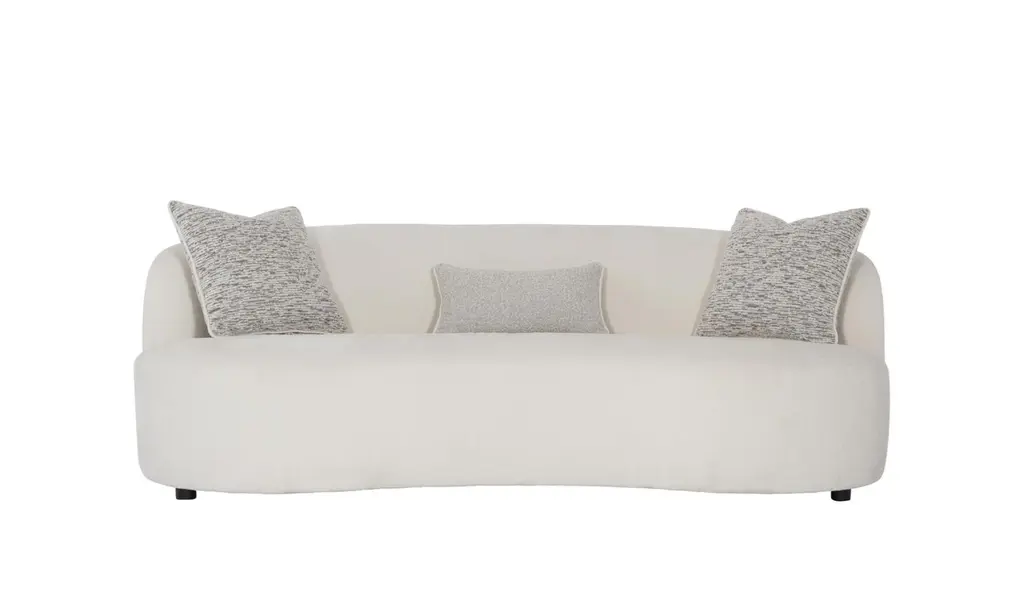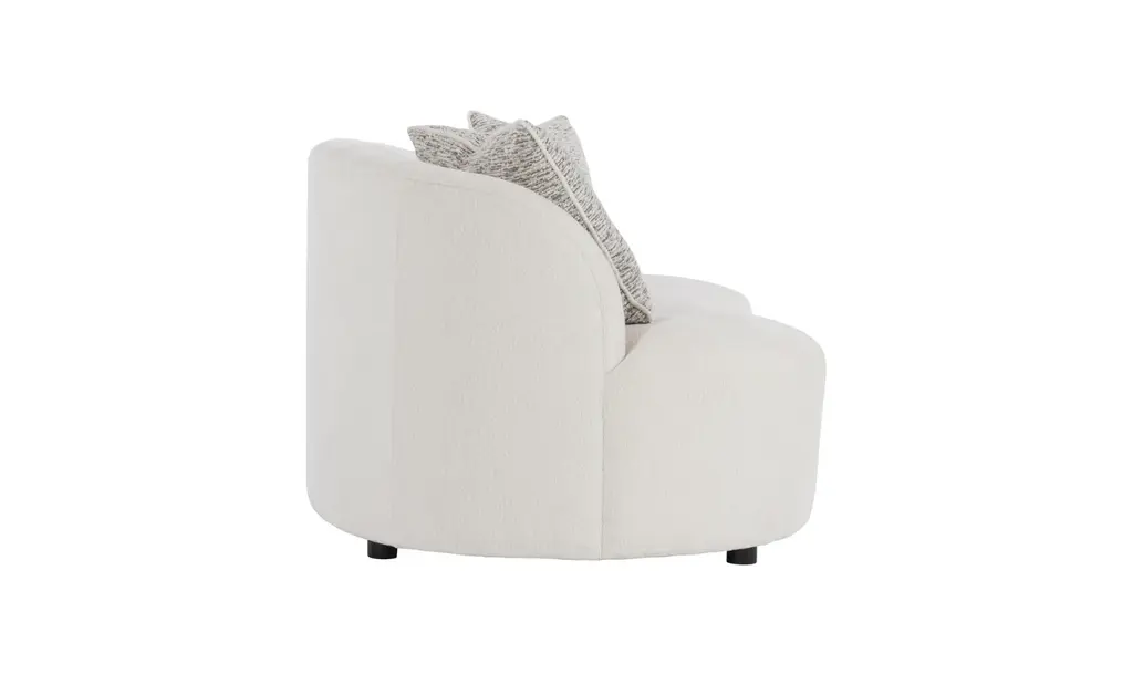 The Elle Fabric Sofa exudes modern elegance and timeless charm, showcasing a luxurious design with exceptional comfort. Inspired by the classic kidney-shaped silhouette, its graceful curves and cloud-like form create a soft, inviting presence. The enveloping backrest wraps gently around the seat, offering a cozy, sheltering feel while adding a sophisticated touch to any space. The seamless, floor-length design enhances the sofa's sculptural appeal, with just a subtle hint of the four discreet feet peeking through. Upholstered in premium fabric, the Elle Sofa delivers both style and durability, ensuring a plush and relaxing seating experience. Perfect for modern living rooms or elegant lounge areas, the Elle Fabric Sofa serves as both a functional piece of furniture and a striking statement. Its refined design and flowing lines create an atmosphere of understated luxury, making it a standout addition to your home.