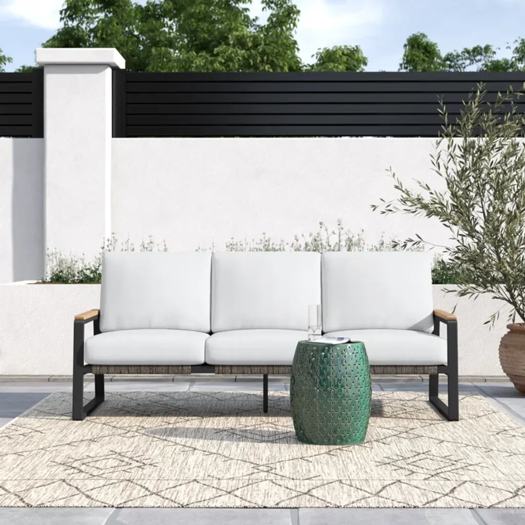 Bernie 77'' Wide Straight Aluminum Patio Sofa With Sunbrella® Cushions