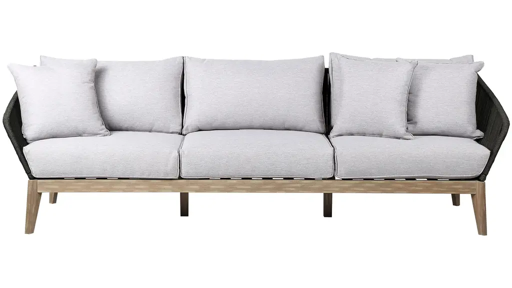 Instantly enrich outdoor spaces with the Bernie Patio Sofa, a 3-seat comfort piece fusing a mix of organic tones and materials, including teak, wicker, and aluminum for an elevated take on outdoor living.
