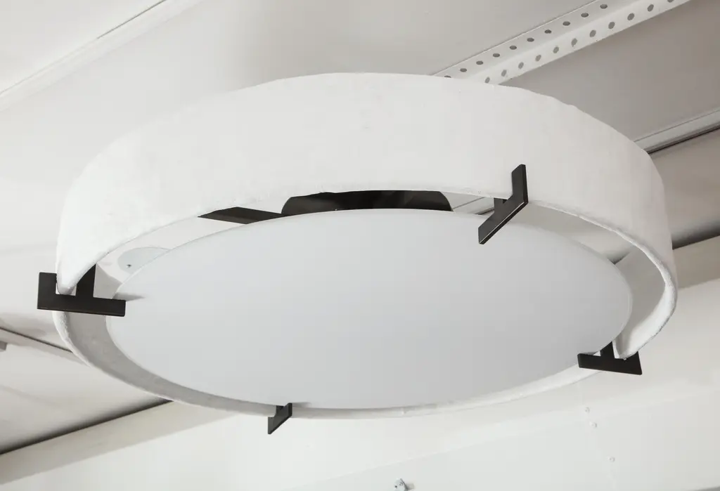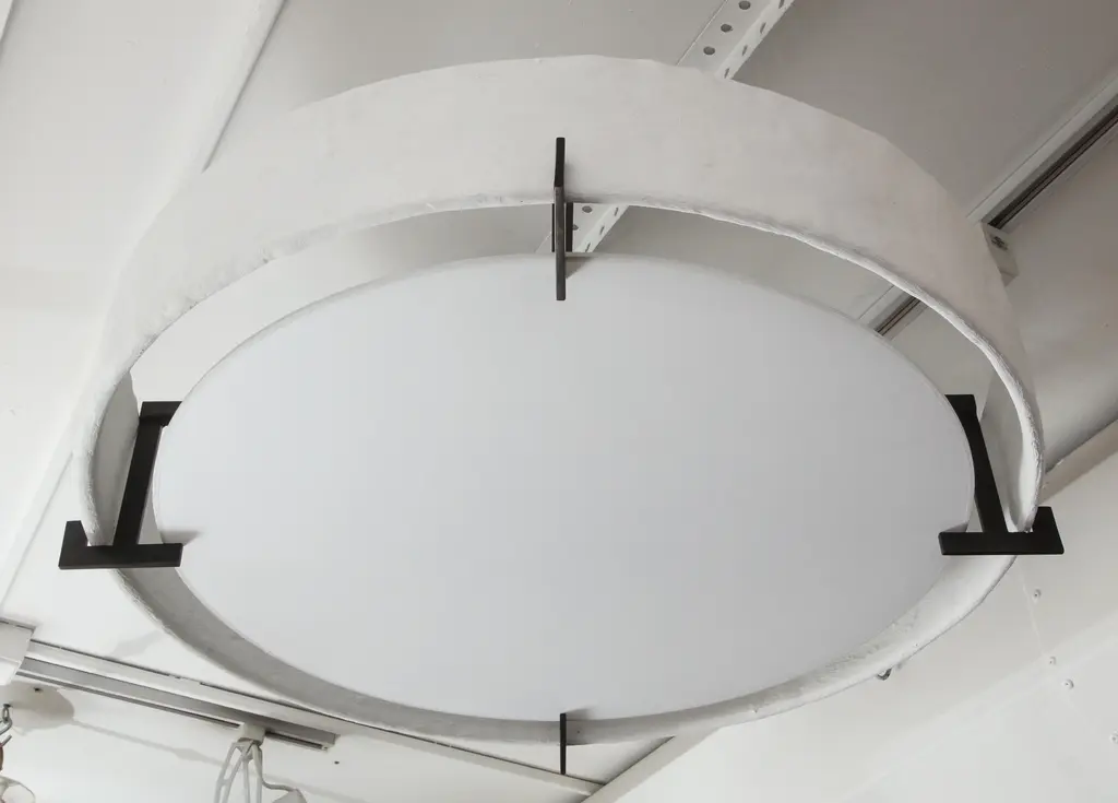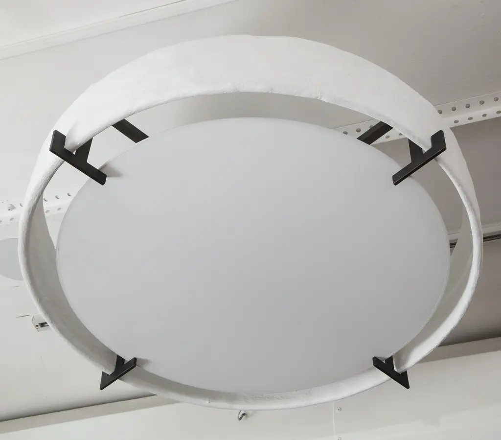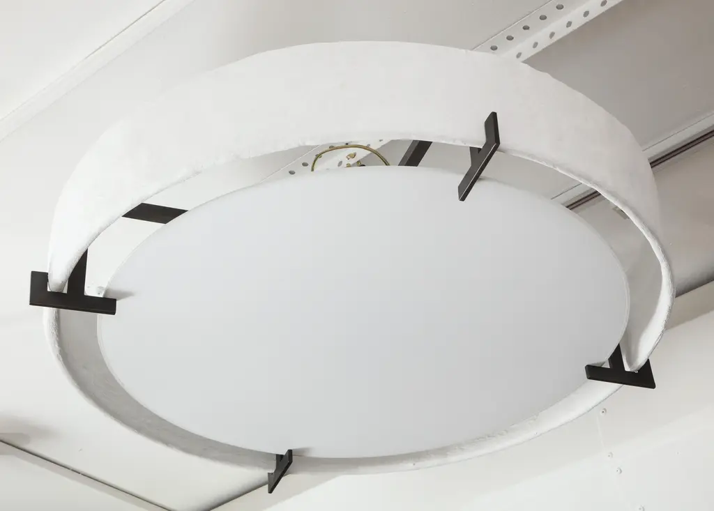 Bespoke plaster and iron fixture in the manner of Jean Michel Frank. NOTE: We highly recommend that our plaster fixtures be crated when in transport.
