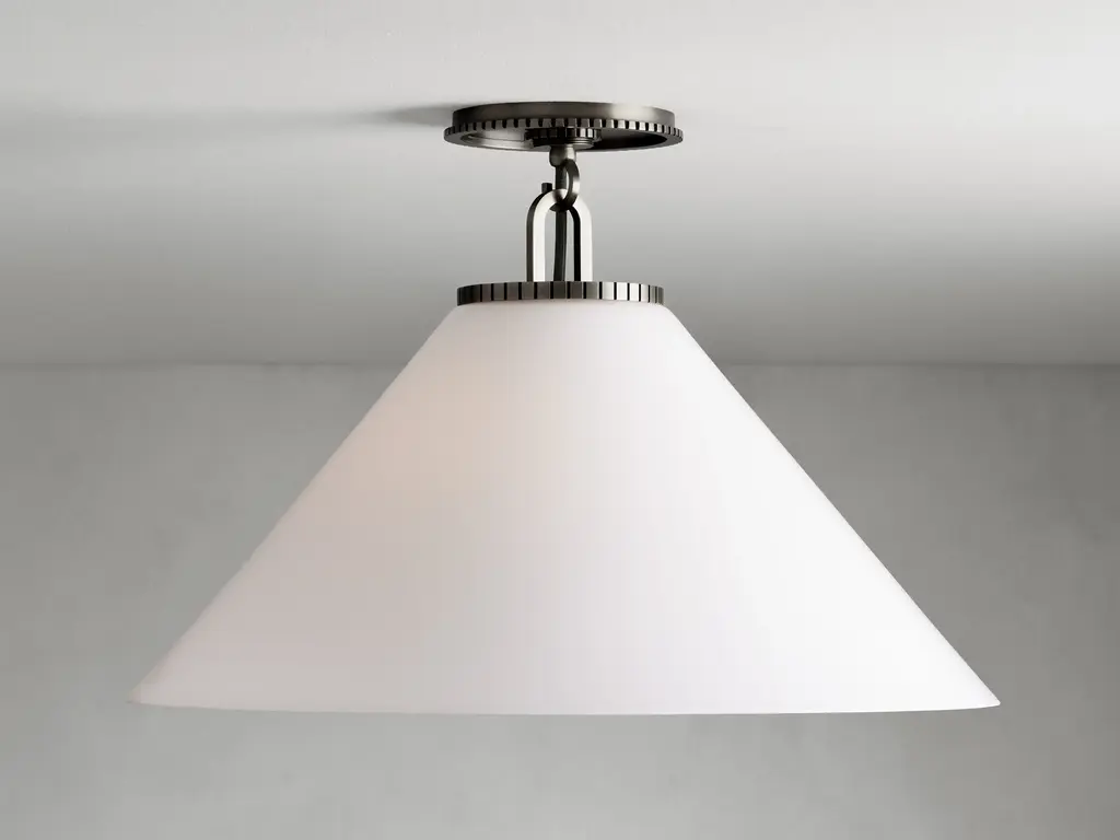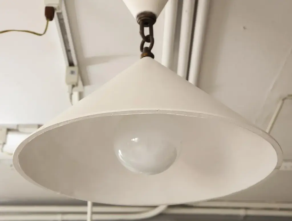 Bespoke plaster cone-shaped lev fixture. All our fixtures are UL wired. NOTE: We highly recommend that our plaster items be crated while in transport.